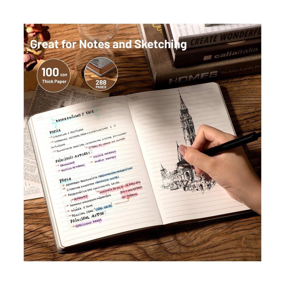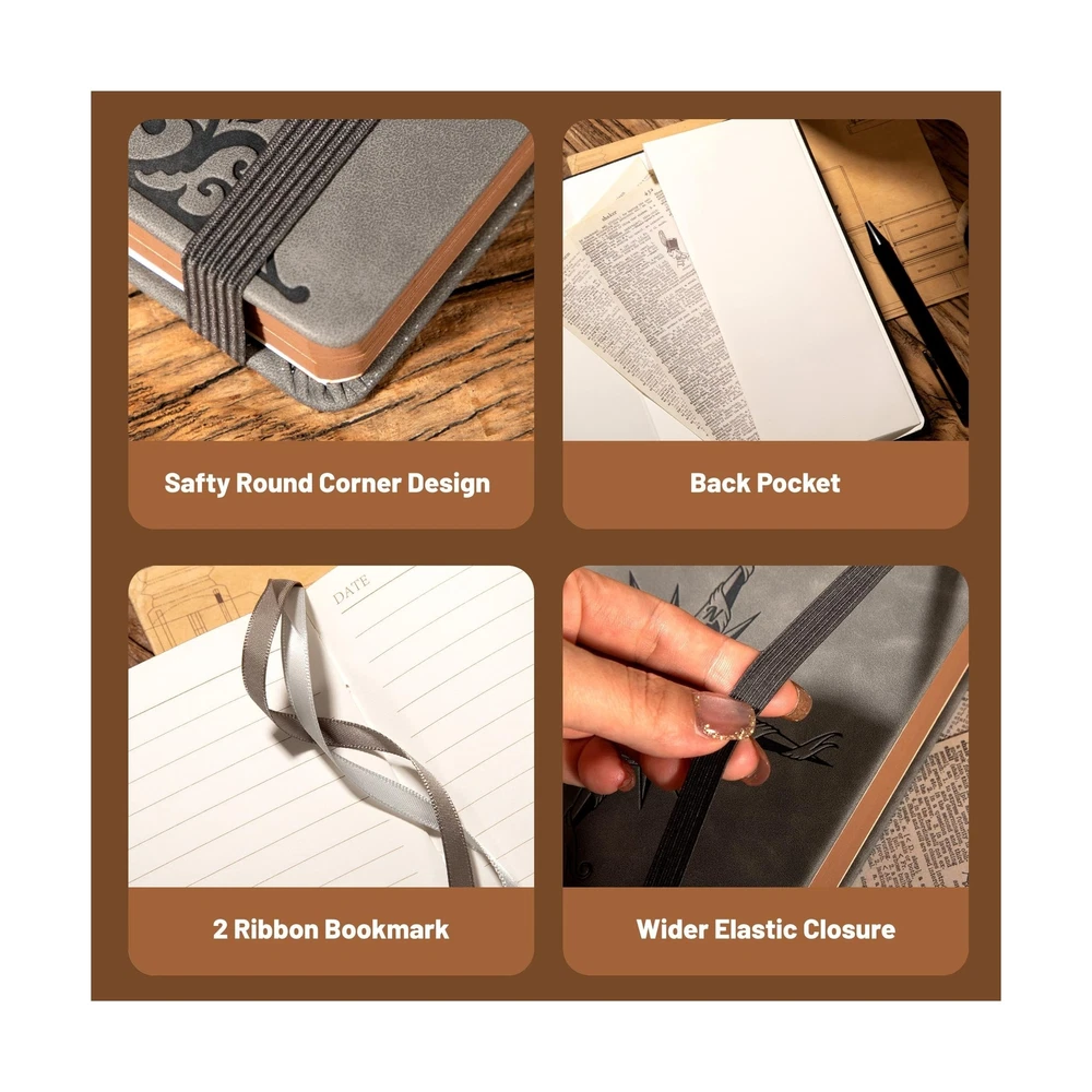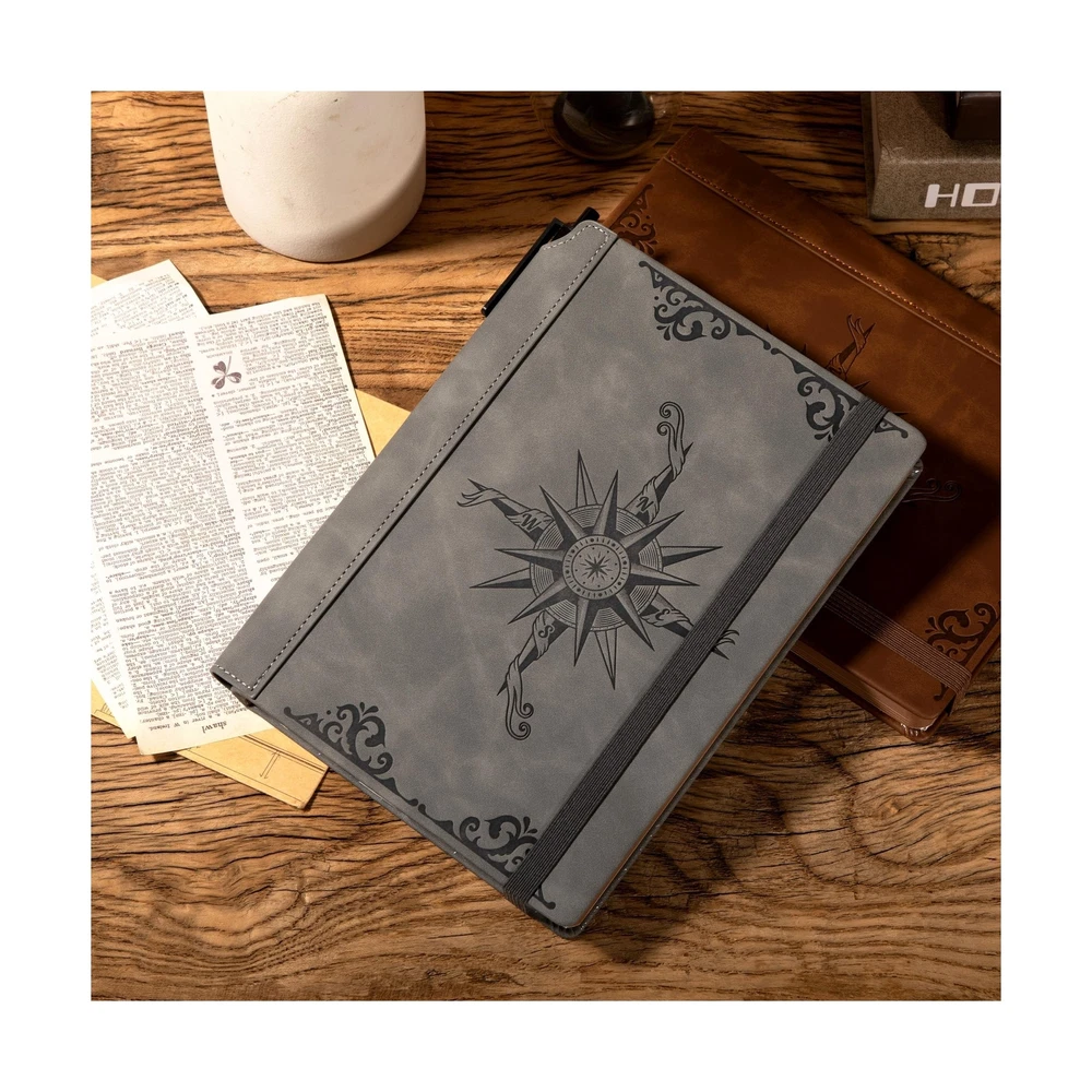 CAGIE Compass Leather Notebook Journal for Men, 100 GSM 288 Pages Lined Journals for Writing, A5 Hardcover Journaling Notebooks Gift Set with Pen for Travel Office Daily Writing - Buy Now with Fast Shipping! CAGIE Compass Leather Notebook Journal for Men, 100 GSM 288 Pages Lined Journals for Writing, A5 Hardcover Journaling Notebooks Gift Set with Pen for Travel Office Daily Writing Product Details Brand: CAGIE Color: Gray Theme: Book Sheet Size: A5 Pages: 288 Pages Cover Material: Faux Leather Style: Vintage Ruling Type: Ruled Special Feature: Soft cover Number of Items: 1 Manufacturer: CAGIE Brand: CAGIE Item Weight: 1.3 pounds Product Dimensions: 8.5 x 6.3 x 1 inches Color: Gray Cover Material: Faux Leather Number of Items: 1 Ruling: Ruled Sheet Size: A5 Manufacturer Part Number: 4RW01-9T Date First Available: May 11, 2024 Key Features ✅ Vegan Leather Bound Journal : Vintage notebook with compass embossed, cruelty-free vegan leather cover, fine stitching, and unique spine as pen holder. 6.3"x8.5", compact for easy carry. ✅ Sturdy Binding: Hardcover journal strong stitching process and extra layer of leather is sewn to prevent spine damage and pages falling out, The stitched leather on the spine can be used as a pen holder. ✅ Premium Quality Paper: Daily journal features 100 gsm 288 pages of premium acid-free paper that prevents ink bleed, erasures, ghosting and shadows while protecting your eyes. ✅ 180Lay Flat Journal Notebook: The writing journal 180 lay flat design makes writing easier, reading more convenient, and taking notes more efficient and making it easier to write for both right and left-handed users. ✅ Notebook Features: Leather bound notebook has 2 Exquisite ribbon bookmarks to help you find content faster; 1 Elastic closure strap to keep the notebook closed; 1 leather stitched pen holder, can hold most pens; 1 Inner pocket for appointment cards, notes, receipts and more. ✅ Versatile Use: Leather notebook is suitable for a variety of occasions, including work, reading, studying, journaling and personal use. this journaling notebook is a reliable companion for capturing ideas, taking notes and unleashing creativity. Product Description
