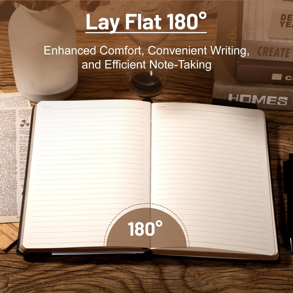 CAGIE Compass Leather Notebook Journal for Men, 100 GSM 288 Pages Lined Journals for Writing, A5 Hardcover Journaling Notebooks Gift Set with Pen for Travel Office Daily Writing Description Features: Vegan Leather Bound Journal : Vintage notebook with compass embossed, cruelty-free vegan leather cover, fine stitching, and unique spine as pen holder. 6.3"x8.5", compact for easy carry. Sturdy Binding: Hardcover journal strong stitching process and extra layer of leather is sewn to prevent spine damage and pages falling out, The stitched leather on the spine can be used as a pen holder. Premium Quality Paper: Daily journal features 100 gsm288 pages of premium acid-free paper that prevents ink bleed, erasures, ghosting and shadows while protecting your eyes. 180Lay Flat Journal Notebook: The writing journal 180 lay flat design makes writing easier, reading more convenient, and taking notes more efficient and making it easier to write for both right and left-handed users. Notebook Features: Leather bound notebook has 2 Exquisite ribbon bookmarks to help you find content faster; 1 Elastic closure strap to keep the notebook closed; 1 leather stitched pen holder, can hold most pens; 1 Inner pocket for appointment cards, notes, receipts and more. Versatile Use: Leather notebook is suitable for a variety of occasions, including work, reading, studying, journaling and personal use. this journaling notebook is a reliable companion for capturing ideas, taking notes and unleashing creativity. Product Details: Brand: CAGIE Color: Black Theme: Book Sheet Size: 5.5 X 8.2 Pages: 288 Pages Cover Material: Faux Leather Ruling Type: Ruled Special Feature: Pen Holder Product Dimensions: 8.5"L x 6.3"W x 1"Th Pattern: Compass Manufacturer: CAGIE Brand: CAGIE Item Weight: 1.37 pounds Product Dimensions: 8.5 x 6.3 x 1 inches Color: Black Cover Material: Faux Leather Ruling: Ruled Sheet Size: 5.5 X 8.2 Manufacturer Part Number: 4RW01-2T Date First Available: May 11, 2024 Handling We will ship all orders within 3 business day of payment. Delivery We Do Not Ship Outside of the Continental US. Return Policy All items qualify for returns within 30 days of receipt. Buyer is responsible for return shipping on any item that is not damaged. Feedback We take our reputation seriously, we buy and sell online, so we understand the value of trust. If you are unsatisfied with your order, please contact us and we will work with you to resolve it to your satisfaction.