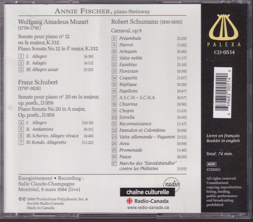 | Artist | Annie Piano Fischer |