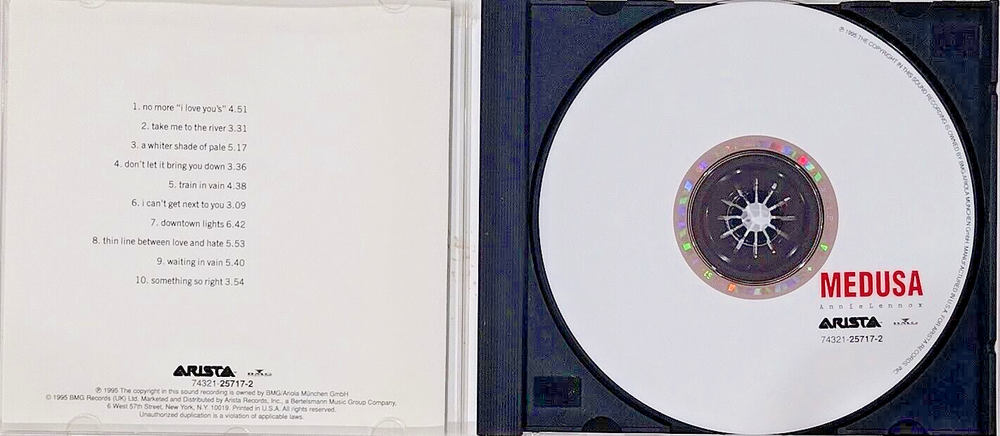 Dive into the eclectic world of Annie Lennox with the 'Medusa' CD, a collection that showcases a blend of electronic pop and classical styles. Released in 1995 under Arista Records, this album is a nostalgic journey through Lennox's storied career, featuring 10 tracks that highlight her unique vocal talent and the intricate work of her band's instrumentation. The CD comes in a standard silver case with excellent inlay and case conditions, ensuring a quality listening experience. With songs that resonate across genres, 'Medusa' is a perfect pick for any music lover looking to relive the 90s or simply enjoy the timeless tunes of one of pop's greats. CD Annie Lennox MEDUSA (1995 Electronic Pop ARISTA) Scottia RETRO Nostalgic ANNIE LENNOX: Real Name: Ann Griselda Lennox Profile: Scottish singer, songwriter, political activist and philanthropist, born December 25, 1954 in Aberdeen, Aberdeenshire, Scotland, UK. After achieving moderate success in the late 1970s as part of the new wave band The Tourists, she and band mate David A. Stewart went on to achieve major international success in the 1980s as Eurythmics. She embarked on a solo career in 1992. In 2011, Lennox was appointed an Officer of the Order of the British Empire. At the 2015 Ivor Novello Awards, Lennox was made a fellow of the British Academy of Songwriters, Composers and Authors, the first female to receive the honour. In 2020 Annie Lennox and Dave Stewart were inducted into the Songwriters Hall of Fame and in November 2022 the two (as Eurythmics) were enshrined into the Rock and Roll Hall of Fame. Genre: Electronic, Pop Style: Synth-pop Year: 1995 Tracklist: No More "I Love You's" 4:51 Take Me To The River 3:31 A Whiter Shade Of Pale 5:17 Don't Let It Bring You Down 3:36 Train In Vain 4:38 I Can't Get Next To You 3:09 Downtown Lights 6:42 Thin Line Between Love And Hate 5:53 Waiting In Vain 5:40 Something So Right 3:54 Pictures are from the items you will receive, please zoom, check and grade by yourself. This Sale is a Give-away since I will close my store soon. The money you pay is for Postage and eBay plus PayPal fees. Buy any 3 or combine (CDs, DVDs, LPs, LASERDISCs, 45 rpm) and get 1 Free I will ship within 1 day (Mon-Fri) from Florida USA if paid before 1 PM Eastern Click here> Visit store for more bargains and unusual items and save $$$$$$