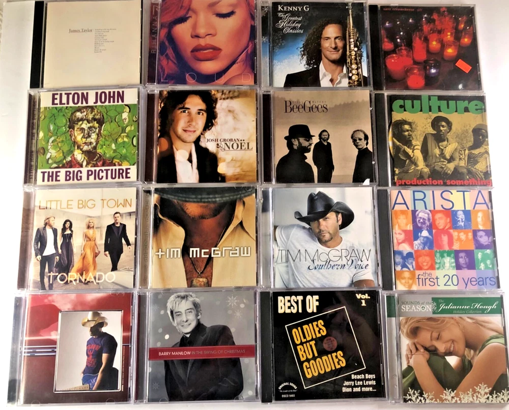 This CD collection features a diverse range of music genres including Pop, Easy Listening, Rock, Soul, Country, Hip-Hop & Soul, R&B & Soul, Rock 'n' Roll, and Rap & Hip-Hop. The album CD is available in the standard Jewel Case format and contains a variety of artists. It is perfect for music enthusiasts who enjoy a mix of different genres. You choose from the above drop down list. I have more choices listed in 21 other listings in my store and can combine s/h.$4.25 to ship 1-100 Please see all my listings for collectables, check my feedback, as I have been an EBAY seller for 24 years. I am happy to combine shipping.The best way to accomplish this,is to put items in your cart and ask for an invoice.If that does not work purchase the items,but do not pay for them and then I can send an updated invoice. Thanks for shopping.