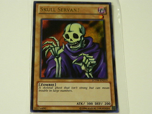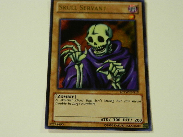 IF YOU COLLECT POKEMON OR YUGIHO CARDS, PLEASE CHECK OUT MY OTHER AUCTIONS. SAVE ME AS A FAVORITE SELLER TO GET ALERTS OF WHAT I LIST WEEKLY! CARD: #LCYW-EN219 Skull Servant, beautiful card, PSA ready! DOMESTIC SHIPPING & HANDLING: First card is $3.50, each additional card is just .50 cents! I NTERNATIONAL SHIPPING & HANDLING: I will ship either First Class if package is under the 4 pound limit, or Priority Mail. Shipping abroad is very expensive usually and it is also very difficult for me. If you have any special requests on shipping ask me before you bid on auction. Ii will combine shipping whenever possible, there are size and weight restrictions shipping internationally so combining shipping is not always possible. Some things I cannot do and some i will not do.