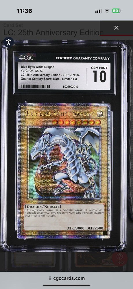 The product is a limited edition Yu-Gi-Oh! TCG card named Blue-Eyes White Dragon, with a card number of LC01-EN004. It is a normal type card with an attack/power of 3000 and a defense/toughness of 2500. The card is a quarter century secret rare and features a dragon creature/monster type. It is in English language and manufactured by Konami.