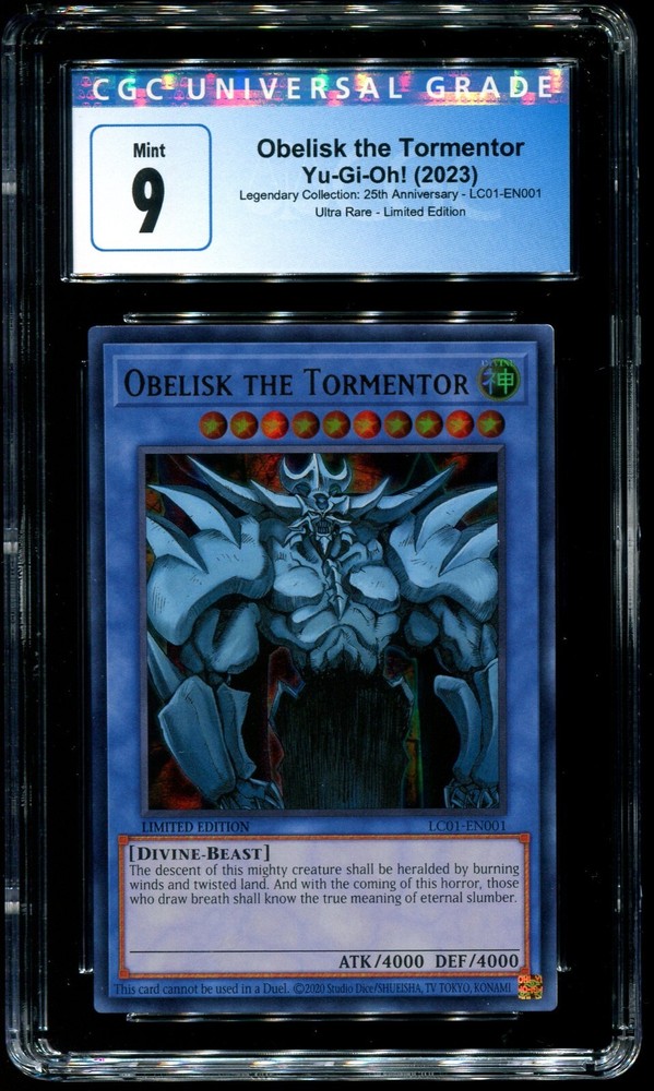 You will receive the exact card in the photos. CGC 9 Obelisk The Tormentor 25th Anniversary 2023 Yu-Gi-Oh! LC01-EN001