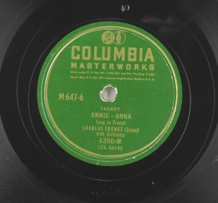 Charles Trenet Biguine a Bango / Annie - Anna Columbia 4350-M 10" 78rpm Shellac VG, Visually Graded. As with any record this age results will vary depending on equipment & experience. Shellac records may need to be cleaned, may have various minor or cosmetic issues such as edge nicks, scuffs or slight storage warp, unless mentioned above will have no major defects that will cause skips or otherwise unplayable. Detailed description or audio sample of any specific record available upon request. Always shipped properly & safely.