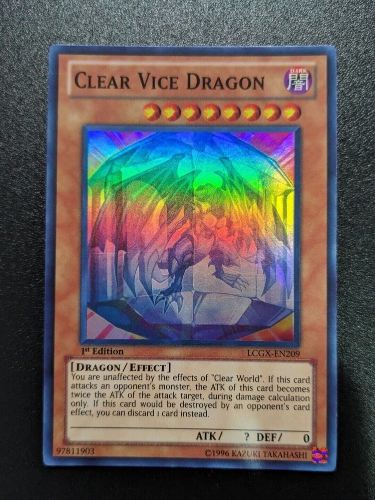 You are bidding on : 1 x Yu-Gi-Oh Legendary Collection 2 CLEAR VICE DRAGON (Super Rare - 1st Edition) LCGX-EN209 All cards are in Near Mint condition unless specified Pictures are stock pictures ONLY it is not of the actual card How we identify the condition of the card: Near Mint: Most of the time cards in this condition are pack fresh but, the card may have minor flaws that are not visible with a quick inspection, small white dots or scratches that you have to closely examine the card to see. Excellent: Overall the card looks near mint but may have minor scratches, slightly worn edges that are visible but they do not interfere with the way the card looks. Lightly Played: Similar to a card in excellent condition except there is more whitening around the edges and the corners are a little more worn or slight bends or creases that are visible. There might be some slight whitening on the back or front of the card. Imperfections will be visible with a quick inspection. When the card is sleeved the imperfections will not be noticeable and the card will look just like the rest of your cards Played: There is a large amount of whitening around the edges and the corners have a good amount of damage, many scratches, bends and/or creases on the card. When the card is sleeved it can still be played Shipping and Handling : Canada Shipping is $1.99 CAD Tracking is offered for $9.99 CAD BUT tracking is required on any purchases that are over $50 CAD Please contact us for combined shipping if interested in purchasing multiple cards before paying USA Shipping is $2.99 CAD Regular Mail for all orders under $19.99 Shipping is $7.99 CAD with tracking for all orders $19.99 and over Please contact us for combined shipping if interested in purchasing multiple cards before paying INTERNATIONAL Shipping is $5.99 CAD Tracking is offered for $29.99 CAD BUT tracking is required for purchases over $50 CAD Please contact us for combined shipping if interested in purchasing multiple cards before you pay Combined shipping: We offer combined shipping: each and every additional item after the first one is only $0.25 (25 cents). To obtain combined shipping fees, please use the shopping cart or ask for the combined shipping invoice BEFORE you pay. If you pay item-by-item, right away after the purchase, we will not be able to offer you combined shipping anymore. Handling Your order will be shipped 1-3 business days after payment has been received *“Business days” are normal weekdays. Saturdays, Sundays, and major holidays do not count as business days. Cards purchased are packaged and shipped in a sleeve, toploaders, a team bag and an envelope to ensure protection of cards Payment : Payments should be made within 5 days after purchase Epic Cards and Games Any questions feel free to email us and allow 1 day for a response. Thanks for looking! Sales Tax (Canada Only) : Purchases made by Canadian residents are subject to applicable GST/HST, depending on your province/territory. (If you do not agree to this, please do not bid. We have a registered business in Canada and are required by law to charge taxes to anything shipped within the country.) Thank you for shopping with Epic Cards and Games