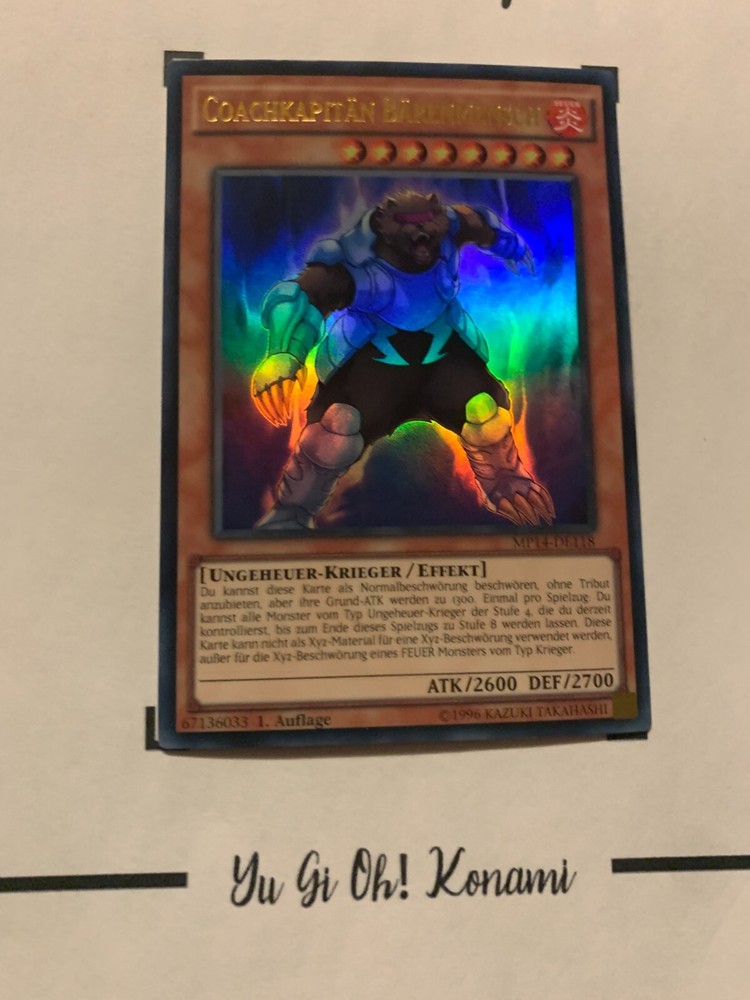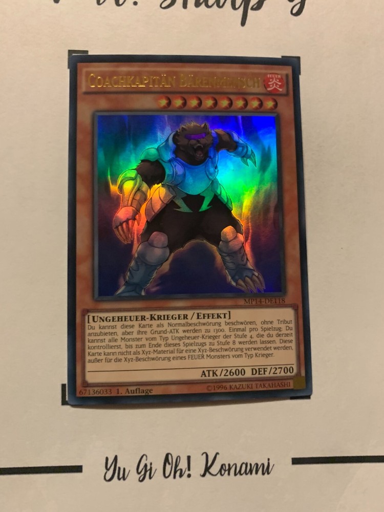 - Mr. Sharp G - - Online Store - TRADING CARDS-TCG-COLLECTION-SETS-TOURNAMENT-Yu Gi Oh! Konami * * * COACHKAPITÄN BÄRENMENSCH - 1. AUFLAGE MP14-DE118 - Bitte schauen Sie sich die beigefügten Bilder an, um einen vollständigen Überblick über den Zustand jedes Artikels zu erhalten. - Zustand des Artikels: Neu* - in einem neuwertigem Zustand. (* Neuer Zustand - kann aber leichte Mängel wie 'whitening', leichte Eindrücke, Dellen u.a. haben - die von der Herstellung der Karte aus Produktion stammen, bitte den Bildern und in der Beschreibung den Zustand entgegennehmen) - Typ/ Serie: UNGEHEUER-KRIEGER/ EFFEKT / 1. AUFLAGE MP14-DE118 - Seltenheitsstufe/ Rarity: ULTRA RARE - Edition : 2014 MEGA-TINS MEGA-PACK / 2014 / DEUTSCH / KONAMI * * * + Kartenschutzhülle & Toploader inklusiver im Preis + mehrfache Bestellung = einmalige Versandkosten + versicherter Versand Bestellung in Höhe - v. 8,50EUR in Deutschland/ Inland - v. 12,50EUR im Ausland/ International + Großbestellungen kostenloser Versand Inland und International - Bei Fragen, Details, nicht im Bestand gewünschte Karten/ Artikel oder Versandgutschriften schreiben Sie uns! Wir freuen uns auf Ihre Nachricht! - Vielen Dank für Ihr Vertrauen, Unterstützung und Besuch in unserem Store ! - Ihr Mr. Sharp G Team