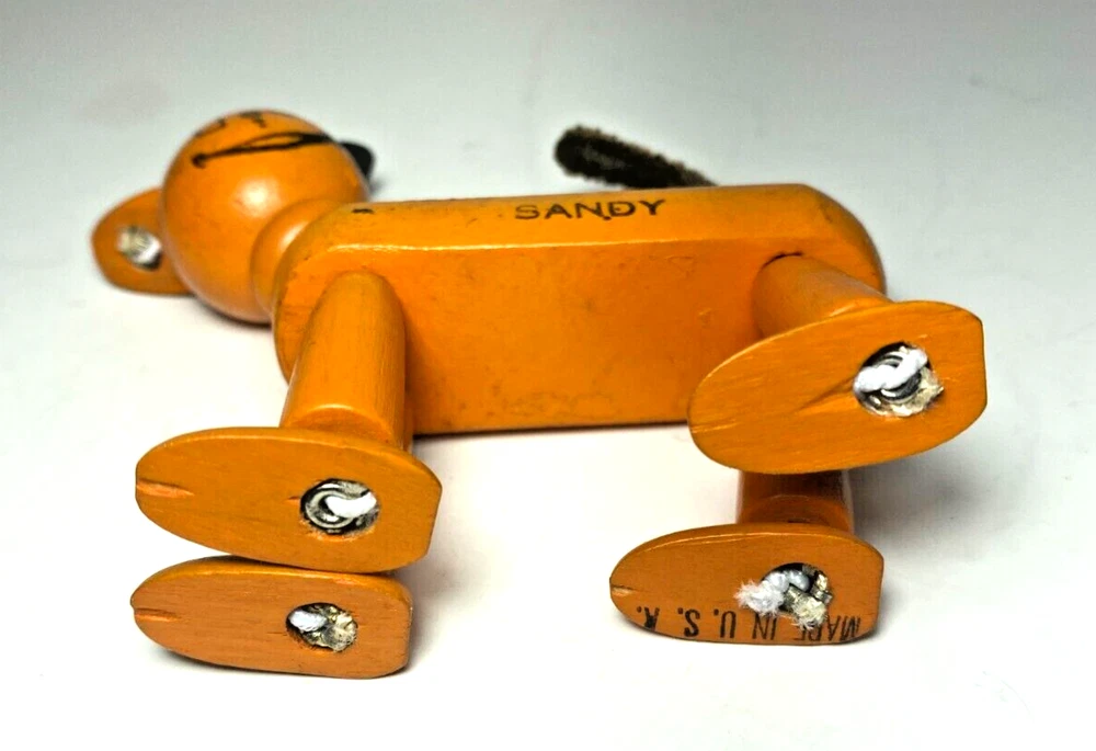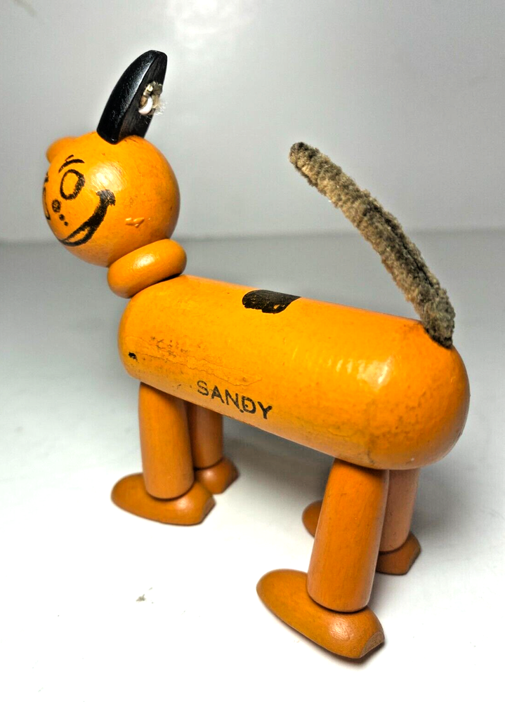 1930'S "SANDY" WOOD JOINTED JAYMAR DOLLS 1930s Jaymar "SANDY" wood jointed toy figure. In good condition, and the joints are tight. Has been restrung will stand. Measures approx 4 inches tall. Feel fr...