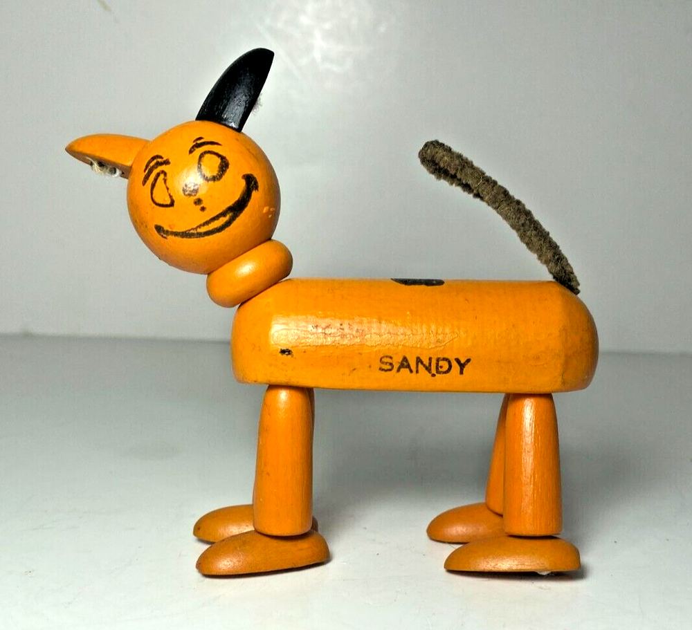 1930'S "SANDY" WOOD JOINTED JAYMAR DOLLS 1930s Jaymar "SANDY" wood jointed toy figure. In good condition, and the joints are tight. Has been restrung will stand. Measures approx 4 inches tall. Feel free to ask any questions.