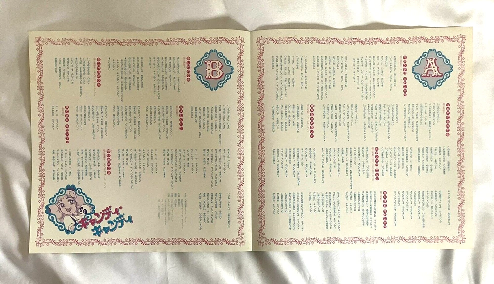 Description Title Candy Candy (Nippon Columbia CS-7022) 1977 Japan Tracklist A1 - Candy Candy A2 - Tsumetaku Sarete mo (Even if I'm Treated Coldly) A3 - Yume nara Samenai de (If This is A Dream, Don't Wake Me) A4 - Candy Waltz A5 - Ganbare Candy (Hang In There, Candy) B1 - Ashita ga Suki (I Love Tomorrow) B2 - Akogare no Hito (The One I Adore) B3 - Nakayoshi Clint (My Good Friend Clint) B4 - Suteki na Candy (Lovely Candy) B5 - Omoide no Uta (Song of Memories) Notes Vocals by: Mitsuko Horie, The Chirps (01,03,06) Mitsuko Horie (02,05,08) Mitsuko Horie, Columbia Yurikago-kai (04) Mitsuko Horie, Koorogi '73, The Chirps (07,10) Koorogi '73 (09) Lyrics by: Keiko Nagita (01,06) Toshio Oka (02~05,07~10) Composed by: Takeo Watanabe Arranged by: You-she Matsuyama Illustration: Yumiko Igarashi No drama credit reported on insert: Candy-Minori Matsushima (introduction before 01,03,07,08 with raccoon Klin) Candy-Minori Matsushima, Annie-Mami Koyama (introduction before 05) Candy-Minori Matsushima, Pony-Taeko Nakanishi (introduction before 10) Record Grading Excellent(EX) Sleeve Grading Very Good Plus (VG+) "aged, no tear, good condition with a few stains " A guide to Record Grades Sealed(S) Brand New. The record is still packed. Mint (M) Absolutely perfect in every way. Certainly never been played, possibly even still sealed. Cover and extra documents like lyric sheet, booklet or poster are in perfect condition. Near Mint (NM) A nearly perfect record. A NM- record has more than likely never been played, and the vinyl will play perfectly, with no imperfections during playback. The cover should look close to perfect with only minor signs of wear and or age. Excellent(EX) The record shows some signs of having been played, but there is very little lessening in sound quality. The cover and packaging might have slight wear but excellent aspect overall. Very Good Plus (VG+) Most common condition for records. The record has been played a few times but displays no major deterioration in sound quality, no wear, despite occasional light marks.The average person would not notice anything wrong. Cover shows some handling imperfection like normal wear and tear, creasing... Very Good (VG) Now the signs of age and handling are starting to show. You can notice some clear wear on the surface, there is some noise . Cover suffers from folding, scuffing of edges, spine splits, discoloration ... Good Plus (G+) The record has been played so much that the sound quality has been noticeably deteriorated, perhaps with some distortion and mild scratches. The cover and contents can be torn, stained and/or defaced, there also can be some writing on it. Good (G) The record should be just playable but will display considerable surface noise and may even jump or skip. The cover and contents are badly damaged or partly missing. Cover can also be missing. Combined Shipping Welcome! You can save on combined shipping! 1. Please contact us. Please let us know which item(s) you would like. Shipping costs are determined by weight. We will check and give you the total shipping cost. 2. Send Invoice Please purchase unpaid. We will then send you a combined invoice. Please check the invoice and make your payment. "Attention" It is rare that a purchase cannot be processed with no payment due to ebay errors or other reasons. In such cases, please pay in advance and the difference will be refunded. If you are unable to contact us, we can communicate only by invoice. We will inform you of the combined shipping cost on the invoice. We will meet your needs as much as possible. Feel free to email with questions. Thank you for your watching !" Please see our Store page.