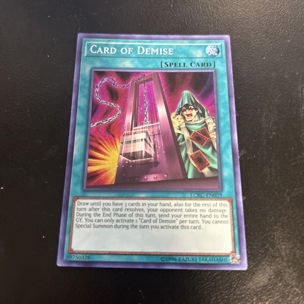 This Card of Demise from the Yu-Gi-Oh! TCG is a must-have for any collector. With its holographic finish and 1st Edition status, it's sure to be a standout addition to your collection. The card is in excellent shape, near mint or better, and is perfect for players aged 6 and up. The card features the iconic Card of Demise character and is part of the Legendary Collection Kaiba set. It's an English language card manufactured by Konami. Whether you're a seasoned collector or just starting out, this card is a great addition to any collection.