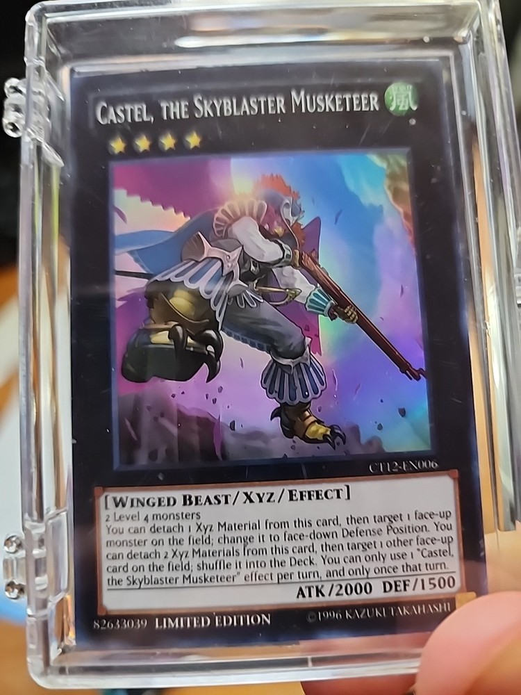 Elevate your Yu-Gi-Oh! TCG collection with the Castel, the Skyblaster Musketeer card from the 2015 Mega-Tins. This strategic addition is a must-have for enthusiasts looking to enhance their gameplay or collectors seeking to complete their deck with powerful Spellcaster cards. As part of the CT12 series, Castel, the Skyblaster Musketeer brings a touch of elegance and might to any dueling lineup. With its intricate artwork and impressive in-game abilities, this card is a standout piece that deserves a spot in every Yu-Gi-Oh! TCG arsenal.