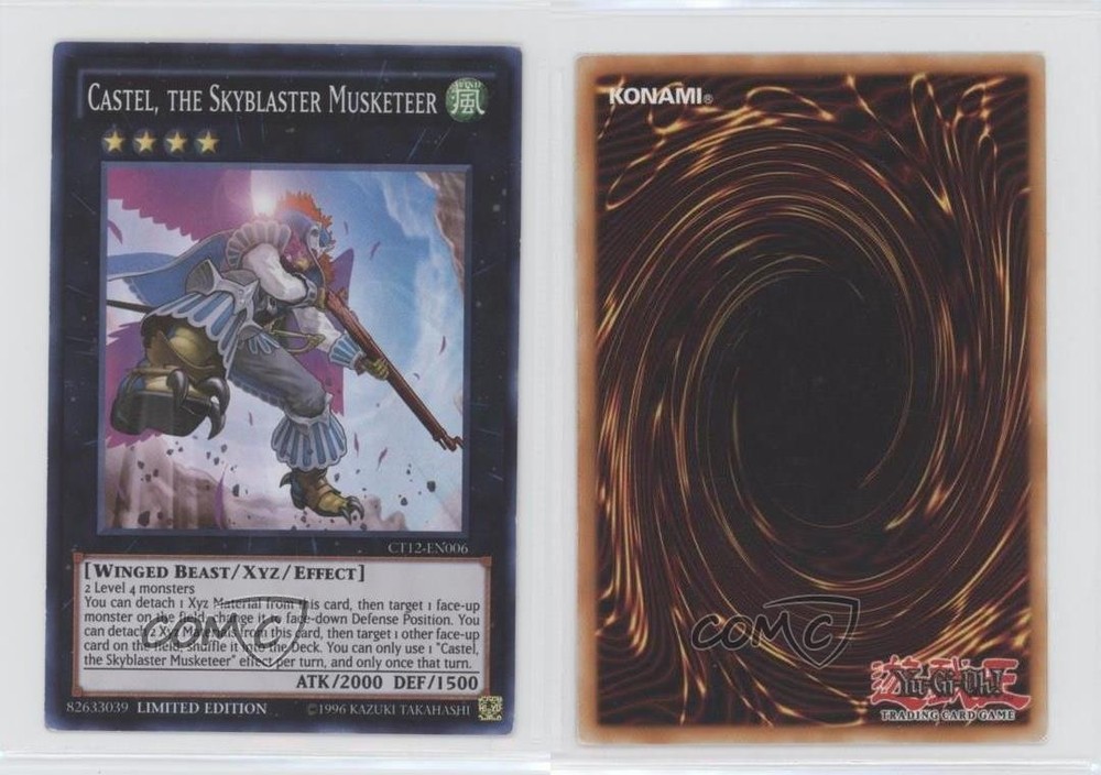 2015 Yu-Gi-Oh! Mega-Tins - Limited Edition [Base] #CT12-EN006 Castel, the Skyblaster Musketeer COMC Item: 190990468 - YuGiOh Card - Featuring Castel, the Skyblaster Musketeer Search for more: 2015 Yu-Gi-Oh! Mega-Tins Search for more: 2015 Yu-Gi-Oh! Mega-Tins - Limited Edition [Base] View all of our Listings Auctions Buy It Now About Us Located in the beautiful Pacific Northwest, COMC (Check Out My Cards) is the world's largest consignment service for trading card singles. More than 10,000 people have used our consignment service to list over 50 million trading cards. Find out how we can help you consign your items on eBay by contacting us through eBay messaging. COMC -- "The Safe & Easy Way to Buy & Sell" Raw Condition for Modern Cards Unless otherwise noted, raw modern cards are listed in Near Mint-Mint condition or better. A NM-MT card appears to be Mint at first glance, but upon closer inspection, may exhibit some of the following: minor print defects (e.g. roller marks, print line, dimple), minor scratches, slight edge wear, and slight corner wear. Centering is clearly visible in the images provided and does not factor into our condition assessment. Raw Condition for Vintage Cards Unless otherwise noted, raw vintage cards are listed in Excellent condition or better. An EX card may exhibit some of the following: minor rounding of corners, surface wear, print defects, light scratches, and slight edge wear/chipping. Centering is clearly visible in the images provided and does not factor into our condition assessment. Domestic Shipping Combined shipping for multiple items is available. To receive combined shipping, please ensure all desired items are in your eBay shopping cart before proceeding to checkout. eBay limits orders to 40 items per order. We automatically combine multiple orders placed on the same day. If you place multiple orders on the same day, please contact us to request a refund of applicable shipping costs. Signature confirmation may be required on invoices over $400. All cards are protected and shipped securely. International Shipping COMC offers eBay's International Shipping (EIS) for international orders under $2,500* (see country exceptions below). All duties and import fees are paid at checkout; in the rare event that there are additional import fees upon delivery, these are borne by the buyer. EIS packages route through a shipping hub in Erlanger, KY before shipping to their final destination. Please note that EIS does not allow for combined shipments. The shipping rates are determined by eBay and cannot be adjusted. *Maximum sale price exceptions: Colombia, Kuwait ($2,000); Taiwan ($1,539); Chile, Costa Rica, Guatemala, Honduras, Trinidad and Tobago ($1,000); Antigua and Barbuda, Aruba, Belize, Dominica, Grenada, Philippines, Saint Kitts and Nevis, Saint Lucia, Montserrat, Turks and Caicos Islands ($500); Dominican Republic, El Salvador ($200). Please request a shipping quote through eBay messaging for orders that exceed the maximum sale price supported by eBay's International Shipping. You will be responsible for all duties and import fees for international orders shipped outside the EIS. All cards are protected and shipped securely. Payment COMC does not accept offers on our cards through our eBay storefront. COMC utilizes eBay’s managed payments system. If you are experiencing difficulties making a payment, please contact eBay for assistance. Return Policy Returns are only accepted on the rare occasion the item is not as described. If you are making a return, please initiate the return process through eBay so a mailing label can be provided for you. Prior to listing, our expert team carefully assessed this item to represent it accurately. Please review the description and high-definition images prior to purchasing to ensure this item meets your satisfaction. We welcome you to contact us if you have further questions about this item. Trust and Integrity COMC carefully assesses each item consigned to us to prevent fraudulent items from entering the marketplace. If you believe an item offered on COMC may be fraudulent, please contact us with details so we can investigate the issue. Items we determine are outside our supported items policy may be removed. Last Modified: 6/1/2025 7:17:50 PM PDT
