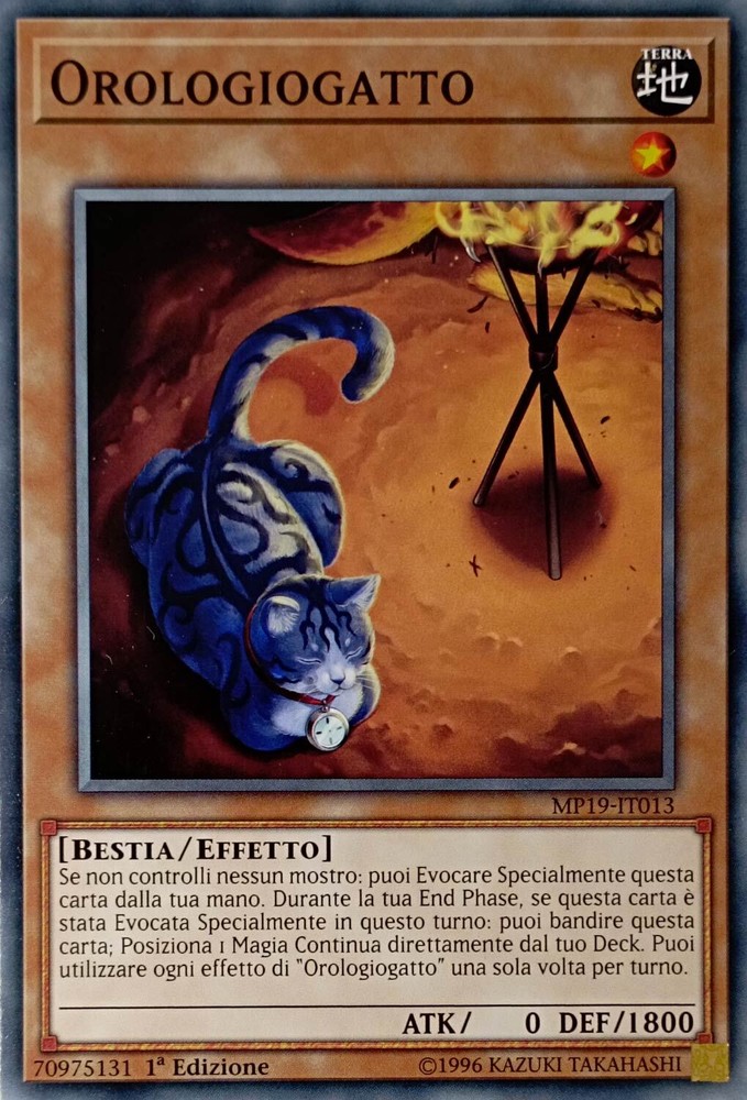 Orologiogatto - Comune - MP19-IT013 - Italiano - Near Mint Orologiogatto - Comune - MP19-IT013 - Italiano - Near Mint Se non controlli nessun mostro: puoi Evocare Specialmente questa carta dalla tua mano. Durante la tua End Phase, se questa carta è stata Evocata Specialmente in questo turno: puoi bandire questa carta; Posiziona 1 Magia Continua direttamente dal tuo Deck. Puoi utilizzare ogni effetto di “Orologiogatto” una sola volta per turno. Shipping Shipping cost: Italy Posta 1 -> 2,95 Corriere Espresso -> 5,99 Outside Italy Priority - 8,00 Delivery time: La Spedizione Viene Effettuata entro i 5 giorni successivi al pagamento dell'ordine. Payment Per qualsiasi info contattateci Service Per qualsiasi info contattateci