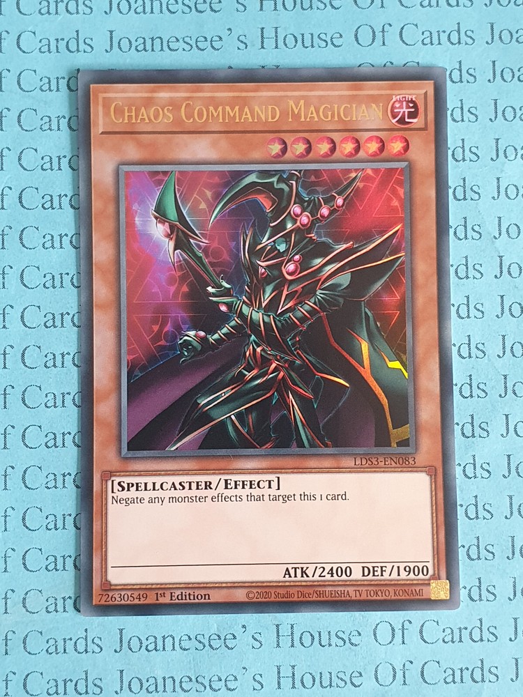 This is the Gold Ultra Rare Holo Light Spellcaster Chaos Command Magician 6 Stars ATK/2400 DEF/1900 Card text: Negate the effect of a Monster Card that targets this 1 card. LDS3-EN083 1st Edition English Mint/NMint Condition Totally Original Konami (or your money back!) I will deliver in safe packaging to keep it in perfect condition. Ideal for players and collectors alike. Check out my other items! I will combine postage costs for multiple purchases. Sign up for my email newsletters by adding my eBay Shop to your favourites