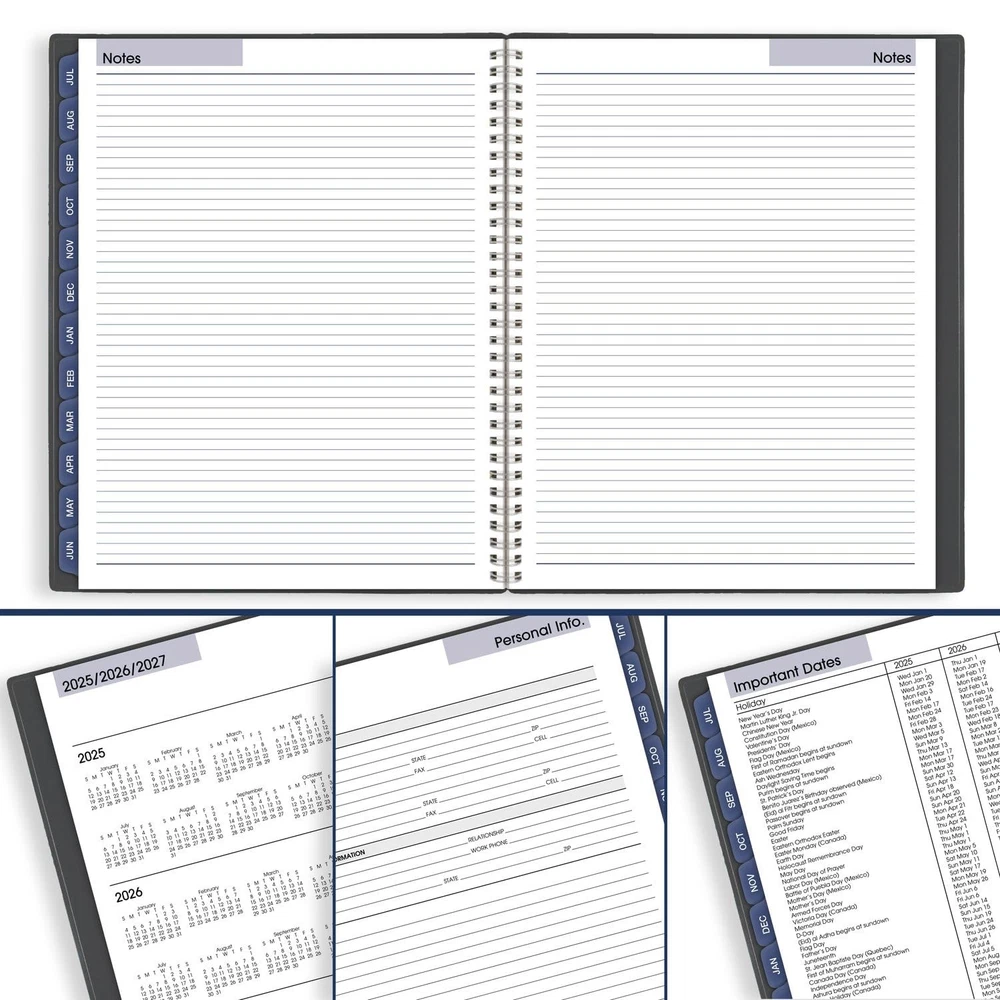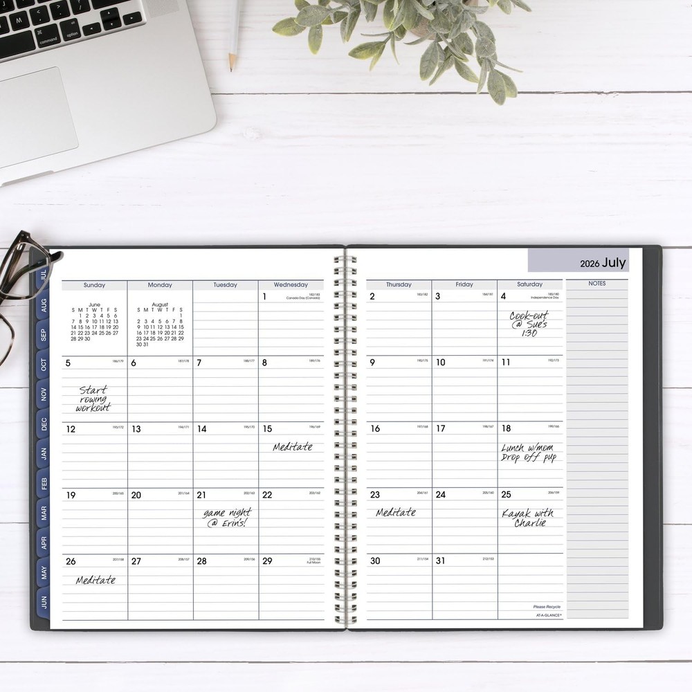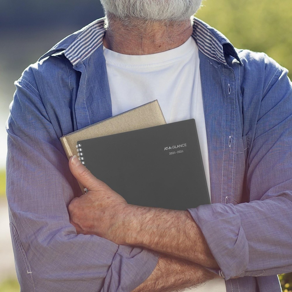 Product Page Charcoal Academic Planner 2025 2026 Spiral Bound Weekly Monthly Organization Description: Keep track of important deadlines, meetings and more with the structured, effective organization of the AT-A-GLANCE DayMinder Academic Monthly Planner. Academic date range covers 12 months from July 2025 — June 2026 with Julian dates. Guaranteed to last all year.* Plan your schedule without fear of distracting ink bleeding. High-quality paper is designed for ink bleed resistance, which keeps plans neat and legible. Keep meetings, events and more recorded on the weekly spreads that feature ruled daily planning pages. Past and future reference calendars included to check dates as you plan. Each page measures 8-1/2" x 11". Monthly spreads feature unruled daily blocks with past and future calendar references. Each month is tabbed to quickly flip to any date. Expand your organizational skills with special pages including a 3-year reference calendar, important dates, and 6 notes pages. Take charge of your schedule with classic style. Planner has a durable cover in charcoal gray and twin wire binding to help prevent snags and secure pages. *ACCO Brands will replace any defective AT-A-GLANCE planner that is returned within one year from the date of purchase. This guarantee does not cover damage due to misuse or abuse. Features: ACADEMIC PLANNING – Manage the upcoming academic year with this classic planner. Date range covers 12 months from July 2025 — June 2026 with Julian dates. GUARANTEED TO LAST ALL YEAR – ACCO Brands will replace any defective AT-A-GLANCE planner that is returned within one year from the date of purchase. This guarantee does not cover damage due to misuse or abuse. INK BLEED RESISTANCE – Plan your schedule without fear of distracting ink bleeding. High-quality paper is designed for ink bleed resistance, which keeps plans neat and legible. WEEKLY & MONTHLY VIEWS – Schedule detailed plans on the ruled weekly spread. Tabbed monthly pages feature unruled daily blocks, plus past and future calendar references. Pages measure 8-1/2" x 11". ENHANCED ORGANIZATION – Extra pages include a 3-year reference calendar, important dates, and 6 notes pages PROFESSIONAL DESIGN – Take charge of your schedule with classic style. Planner has a durable cover in charcoal gray and the wirebound design helps keep pages secure.