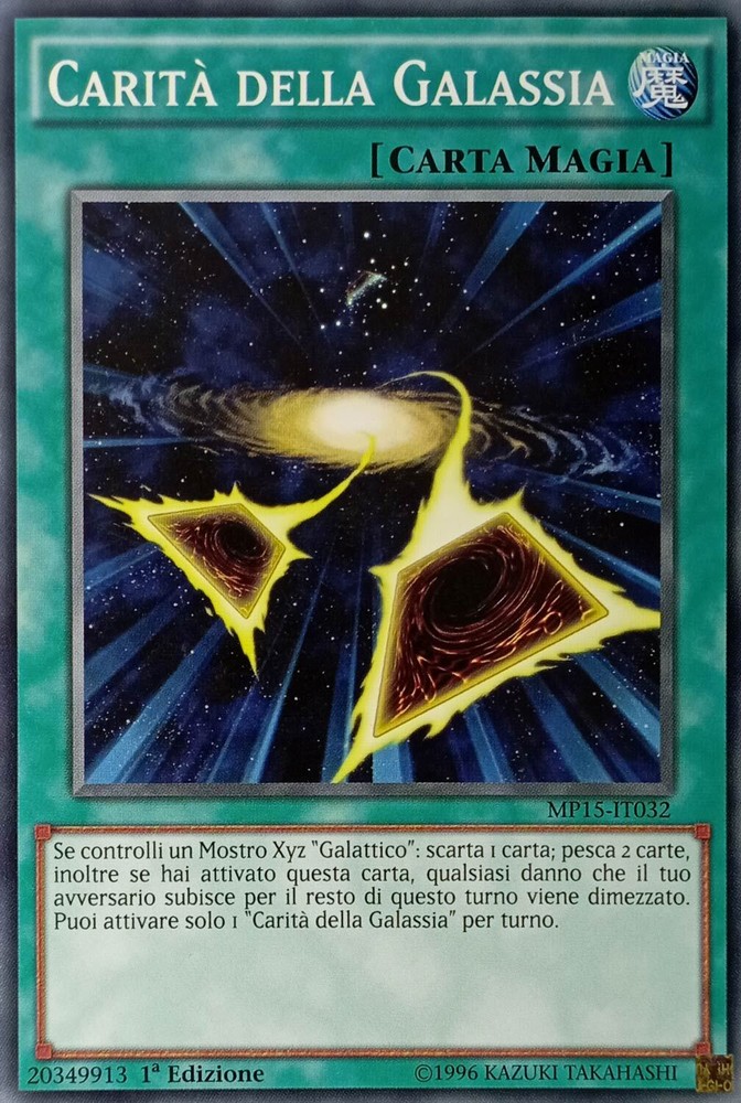 Carità della Galassia - Comune - 2015 Mega-Tins Mega-Pack - MP15-IT032 Ita Nuovo Carità della Galassia - Comune - 2015 Mega-Tins Mega-Pack - MP15-IT032 Ita Nuovo Se controlli un Mostro Xyz “Galattico”: scarta 1 carta; pesca 2 carte, inoltre se hai attivato questa carta, qualsiasi danno che il tuo avversario subisce per il resto di questo turno viene dimezzato. Puoi attivare solo 1 “Carità della Galassia” per turno. Shipping Shipping cost: Italy Posta 1 -> 2,95 Corriere Espresso -> 5,99 Outside Italy Priority - 8,00 Delivery time: La Spedizione Viene Effettuata entro i 5 giorni successivi al pagamento dell'ordine. Payment Per qualsiasi info contattateci Service Per qualsiasi info contattateci