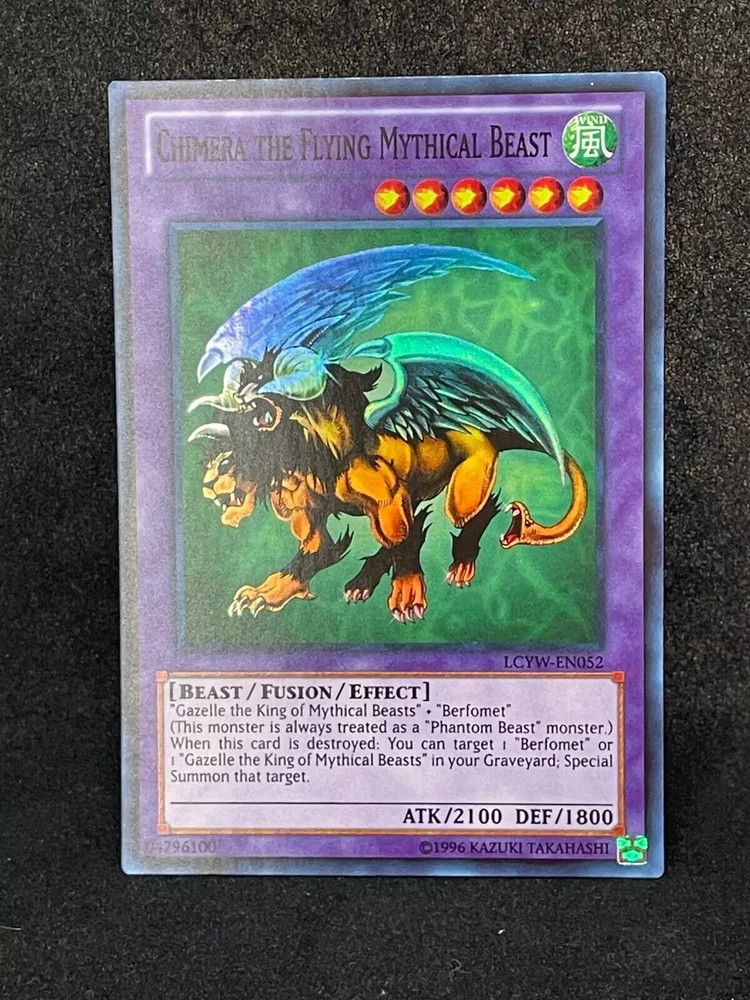 Elevate your Yu-Gi-Oh! TCG collection with the mythical Chimera the Flying Beast, a formidable creature from the Legendary Collection 3: Yugi's World-1st Edition. As a Super Rare card, it stands out with its unique artwork and powerful in-game abilities. Card number LCYW-EN052, this Effect and Fusion type card embodies the might of a Beast with an attack power of 2100 and a defense strength of 1800. With its attribute aligned with the wind element, Chimera offers strategic depth to your deck. The card is presented in English and produced by Konami, ensuring the quality and authenticity of your collectible. Whether for competitive play or simply as a collectible, this first edition card is a must-have for enthusiasts seeking to enhance their game with a touch of legendary prowess.