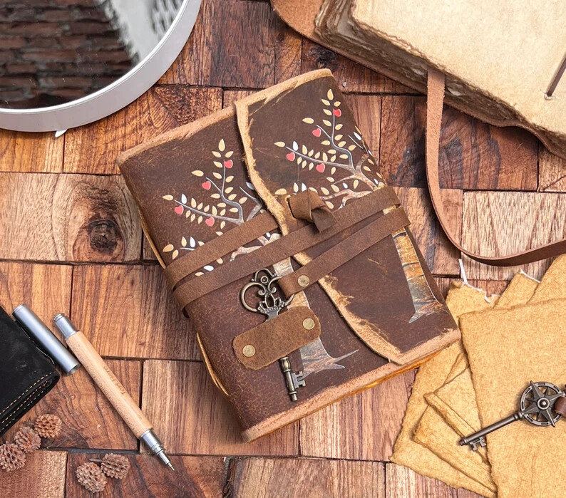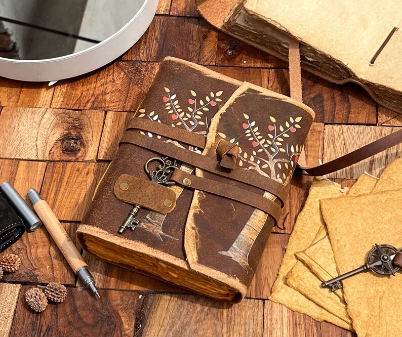 Classic key bound Genuine Leather Journal, Leather Notebook, Custom Engraved Gift for Women and Men Handmade Paper, Travel Journal gifts • Name - Key bound Journal • Size - 7×5 inches 8 x 6 inches 10×7 inches 13×10 inches • Lock - C-Lock brass • Leather quality- genuine • Paper- Vintage deckle edge old paper OR Handmade plain white paper • 100 Sheet (200 pages on both sides) ● Antique Paper - Vintage Journal is made of unique vintage paper which looks like it was pulled from history. You will love the old looking handmade cotton paper (200 pages) which is unique to our vintage journals. ● EXQUISITE & UNIQUE SEMI PRECIOUS STONE: The vintage journal is embossed with a special stone called “yellow moonstone” which helps to reveal inner truth within yourself and encourage self-awareness and self-expression. We have taken extra to make sure that the embossing is perfect in every piece. ● VINTAGE LOCK AND STURDY BINDING - The vintage lock will keep all your valuable writing locked inside. Sturdy hand-stitched binding to make sure that no paper comes out loose from your vintage notebook. ● A sketchbook is great for keeping by the bedside to jot down dreams, or for use as a diary or journal. ● It is a truly unique and wonderful gift for a friend, the men, women, and Wiccans in your life! or to treat yourself to as a special keepsake ● our journals are influenced by symbolism that is derived from the Wicca/Pagan community, creating a personalised space where your inner creative genius can flourish. ● The paper is made from sustainable cotton and jute canvas. The paper is acid-free and pH neutral therefore is a timeless piece of art. ● Use Any Kind Of Pen - Sketch, Doodle, Write on your journal notebook with a Calligraphy Pen Fountain Pen, Brush Pen, Ball Pen, Acrylic Colours, Watercolour and many more. ◆ {Multiple Uses} ● The vintage leather journal is a perfect sketchbook, Home Gifts, gifts for him, gifts for her, gifts for him Christmas, gifts for him birthday, harry potter gifts, potter gifts, harry gifts, wizard gifts, books of the wizard, Harry Potter books, Potter SpellBook, Phoenix, Anniversary gift. Mother of earth Leather Journal Book of shadows Grimoire journal Blank Spell Book PAYONEER I accept Payoneer. COUNTRY: Shipping Worldwide from INDIA TYPE: Standard Int'l Flat Rate Shipping OTHER: I usually ship within 24 hours after receipt of payment. The delivery time from Ukraine: 10-25 days. Item will be qualitatively packed. Always leave a positive feedback to good ebayers. 30-Day return policy : I guarantee you complete satisfaction with all my high quality products. If you receive an item you did not order or if an item you ordered is received damaged or defective, I will refund you the price you paid for it or replace it with identical one.