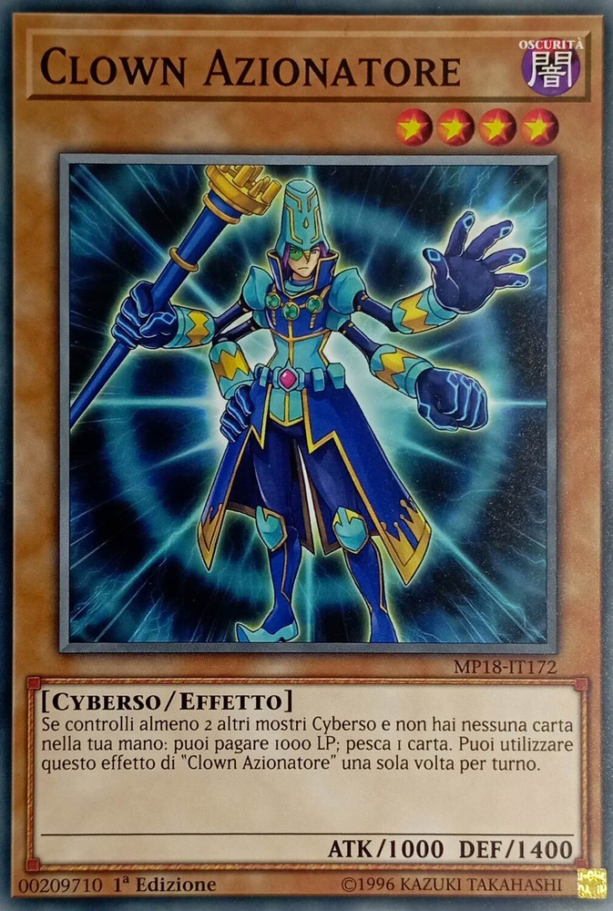 Clown Azionatore - Comune - Mega-Tin 2018 Mega-Pack - MP18-IT172 - Ita - Nuovo Clown Azionatore - Comune - Mega-Tin 2018 Mega-Pack - MP18-IT172 - Ita - Nuovo Se controlli almeno 2 altri mostri Cyberso e non hai nessuna carta nella tua mano: puoi pagare 1000 LP; pesca 1 carta. Puoi utilizzare questo effetto di “Clown Azionatore” una sola volta per turno. Shipping Shipping cost: Italy Posta 1 -> 2,95 Corriere Espresso -> 5,99 Outside Italy Priority - 8,00 Delivery time: La Spedizione Viene Effettuata entro i 5 giorni successivi al pagamento dell'ordine. Payment Per qualsiasi info contattateci Service Per qualsiasi info contattateci