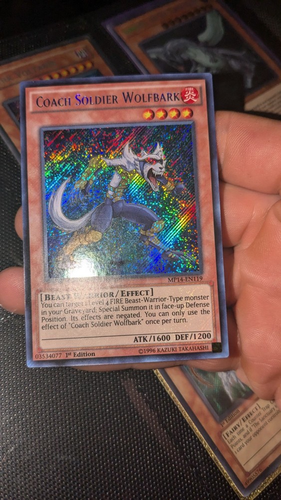 This rare and powerful card from the 2014 Mega-Tins Mega Pack set is a must-have for any serious collector or player of Yu-Gi-Oh! TCG. Featuring the fierce Beast-Warrior creature type and an impressive 1200 defense/toughness, this Effect card is sure to turn the tide in any battle. With its fiery Attack/Power of 1600 and Secret Rare rarity, the Coach Soldier Wolfbark card, numbered MP14-EN119, is a valuable addition to any collection. Produced by Konami and presented in English, this 1st Edition card is a true gem from the 2014 Mega-Tins Mega Pack.