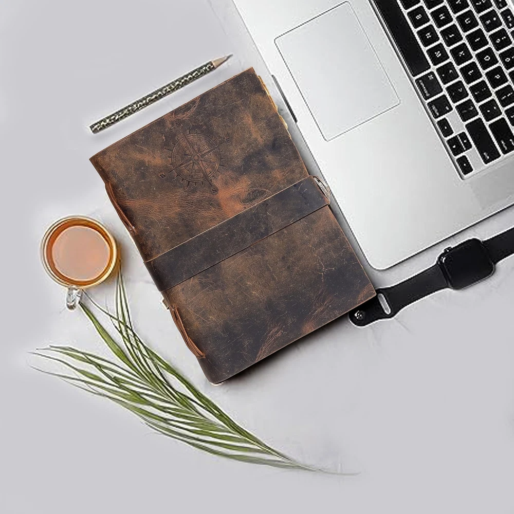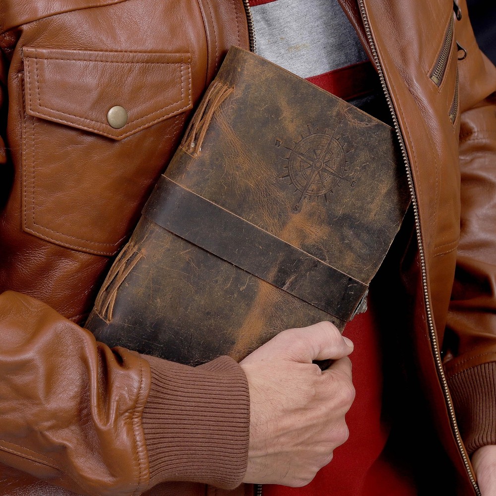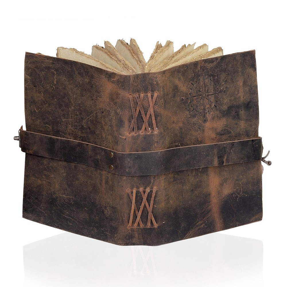 Compass Vintage Leather Journal,Antique Handmade With Lock Leather Bound journal with deckle edge paper for Men And Women Diary,Drawing Journal Notebook,Great Gift (ROUGH VINTAGE BROWN) ✓ Free 60 Day Returns ✓ Free Express Shipping Description: CUERO Vintage Leather Journal - Antique Handmade Leather Bound journal with deckle edge paper for Men And Women Made from Full grain buffalo leather this book is handcrafted by artisans working with leather for decades. Unlined Deckle Edge paper 100 sheets/200 pages Counting both sides (Non-Refillable) 100% Handmade Paper which is recycled from cotton and is acid-free and wood- free. Classy String Key closure, Raw Handcut design. Ideal for alternative notebook, notepad, writing notebook, journalists etc.Hunting Logbook, Poetry Work, Journalists, Food Planner, Commonplace Book, Instagram Scrapbook and Bible Journaling. Makes an Awesome Anniversary, Graduation, Valentine Christmas Birthday Gift. Great gift for students, Artists, travellers. Features: PERFECT HANDCRAFT JOURNAL - Made from 100% Buffalo Leather with Antique Deckle Edge Paper. This Book Is Hand Crafted by Artisans Working with Leather for Decades. The Color of The Journal Is Very Unique. Use Any Kind Of Pen - Write/sketch/doodle on your journal notebook with a Fountain Pen CalligraphyPen, Ball Pen, Brush Pen, Acrylic Colours, Watercolor. IDEAL USE AND PERFECT GIFT Perfect Use for Business Executive, Poetry Work, Journalists, Craftsman, Writer. A Lovely Treat for Your Loved Ones for An Anniversary, Birthday or Graduation Present, Or for Someone Starting A New Adventure and A Perfect Gift for Those Who Love Vintage One. Dimension (8 X 6 X 1.5) With Uncut Deckle Edge Paper, Easily Handle Notebook, You Can Fit with Minimum Space, Easily Handle in Long Journey. Once You Have Used It You Will Feel Like You Have the Best Journal in the World. BINDING Binding Is Made by Hand Stitching Which Having Enough Strength That the Paper Never Comes Out. The Journal Made by High Quality Buffalo Leather and Paper Have Been Used Is Vintage Historical Paper Which Is Very Durable. OUR GUARANTEE: If for any reason you dont love the Wanderings vintage notebooks please let us know and well send you a refund - no questions asked. It is as simple as that! Product Details: Brand: cuero Color: Rough Vintage brown Theme: Book Pages: 200 Cover Material: Leather Style: Vintage Ruling Type: Plain Special Feature: Lock Number of Items: 1 Binding: Unknown Binding Brand: cuero Item Weight: 1.3 pounds Product Dimensions: 6 x 1.5 x 9 inches Item model number: DECKLE STRAP Color: Rough Vintage brown Cover Material: Leather Material Type: Paper Number of Items: 1 Size: ROUGH VINTAGE BROWN Ruling: Plain Manufacturer Part Number: DECKLE STRAP Date First Available: January 21, 2022