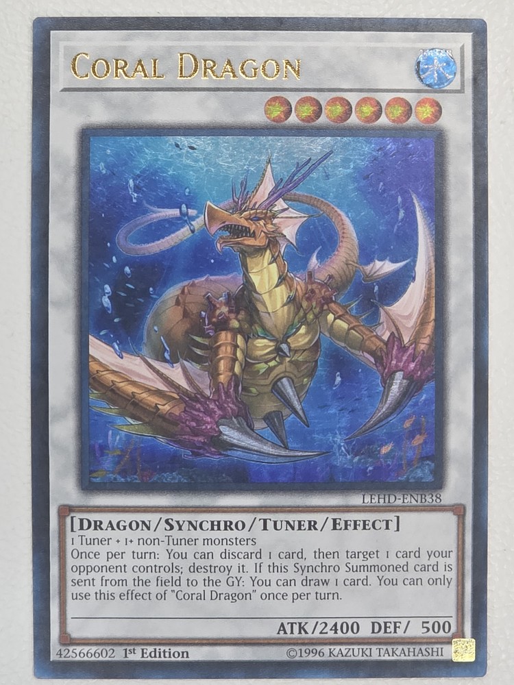 This is a nice example of a Legendary Hero Decks #LEHD-ENB38 Coral Dragon Other important information about this card: Ultra Rare In 2018 Coral Dragon played for the . Please check out our other listi...