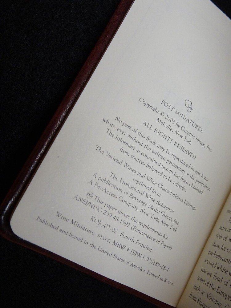 IMPORTANT - Please Read Before Purchasing: As a general rule, we do not ship outside the continental United States. In some cases, we make exceptions, but all our listings indicate where we ship. If you are a non-continental US buyer, PLEASE DO NOT PURCHASE THIS ITEM WITHOUT CHECKING WITH US FIRST. For some reason, eBay allows this and as a result, we lose all our current watchers when we relist the item. Many times, buyers do not want to pay the high international shipping or customs costs and we must then re-list the item and start over with buyer exposure. Thank you. Internal Reference ID: 1002 ***** Purchased and never used (listing as Used as there is no packaging or label and it has storage wear). Fairly sure it was purchased at the Culinary Institute of America in Napa CA while I was taking some classes. Has been carefully stored in a plastic bag, but has faded - back side is closer to the original color. The photos are part of the item description. If you need additional photos before purchasing, just let us know. Compact and portable leather bound wine notebook - easily fits in a pocket or purse. Great for reference and wine tastings - in a winery or at home. Brand: Crane Name: Wine Notes Series: Post Miniatures Sub Series: Wine Miniatures Style: MRW ISBN: 1-930189-28-1 Copyright: 2003 by Graphic Image, Inc. Outer Cover: Red Leather (faded) with Gold Lettering Inner Pages: Cream with Gold Edges Measurements: approximately 3.75 X 2.75 (just under) inches Thickness: approximately .5 inches At listing time, we also have the following wine label book: Wine Label Photo Album Book Red Burgundy Tan Fleur de Lis Lys Made in Italy ***** MOBILE PHONE BUYERS: Approximately 70% of our sales are made via mobile phone where it may be difficult to read and view pictures. Please take a few extra seconds to review items before purchasing. BEFORE PURCHASING: PLEASE REVIEW THE PHOTOS CAREFULLY and / or compare to any existing item you may own as item is sold as is. READ THE DESCRIPTION CAREFULLY and feel free to send us any questions or ask for additional photos, photos with more detail or measurements before purchasing. PAYMENTS: If you are unable to pay within 48 hours (standard eBay policy), please send us an email letting us know when you'll be able to pay. We will accommodate reasonable requests! If we do not receive payment or any communication from you in 48 hours, we will open an Unpaid Item Case . L isting downtime is just too long to wait any longer. SHIPPING: All shipping costs include packaging, insurance and tracking. We always ship the same day that payment is received if possible - with the following exceptions: 1) our local FedEx and UPS offices have a 3 pm CST cutoff time and are closed weekends; 2) our local USPS closes at noon on Saturday. If you need expedited shipping, just let us know and we will try to accommodate your request (extra costs may be required).