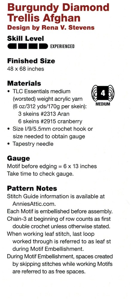You are viewing a Afghan Crochet Pattern Annie's Attic #885111 Leaflet - Using MediumWeight Yarn being sold as is. Crochet GEOMETRIC AFGHANS Rippled Ribbons Afghan - Skill Level Intermediate Burgundy Diamond Trellis Afghan - Skill Level Experienced This a 4-page pattern leaflet. This listing is for only the pattern leaflet. Please view the pictures. ~~~~~~~~~~~~~~~~~~~~~~~~~~~~~~~~~~~~~~~~~~~~~~~~~~ Customer service & satisfaction is very important to us. If you have any problems with your purchase, email us and we will handle your complaints promptly. We want our customers to be happy with their purchase, so please give us the opportunity to handle your concerns before leaving any negative feedback. We are a Smoke-Free Home THANK YOU!