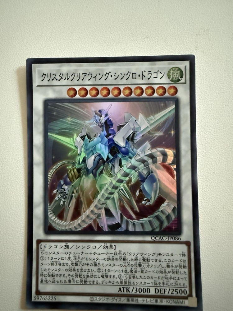Elevate your Yu-Gi-Oh! TCG collection with the Crystal Clear Wing Synchro Dragon from the Legendary Duelists: Synchro Storm set. This Super Rare card, numbered LED8-EN005, features the formidable creature/monster type of Dragon, boasting an attack/power of 3000 and a defense/toughness of 2500. The card is an Effect type with the unique attribute of Wind, adding a strategic advantage to your gameplay. The Crystal Clear Wing Synchro Dragon card is a must-have for collectors and players alike, manufactured by Konami and presented in Japanese. It's a 1st Edition piece that adds rarity and depth to your deck. Whether for competitive play or simply as a display-worthy collectible, this card is a stellar addition to any Yu-Gi-Oh! TCG assortment.