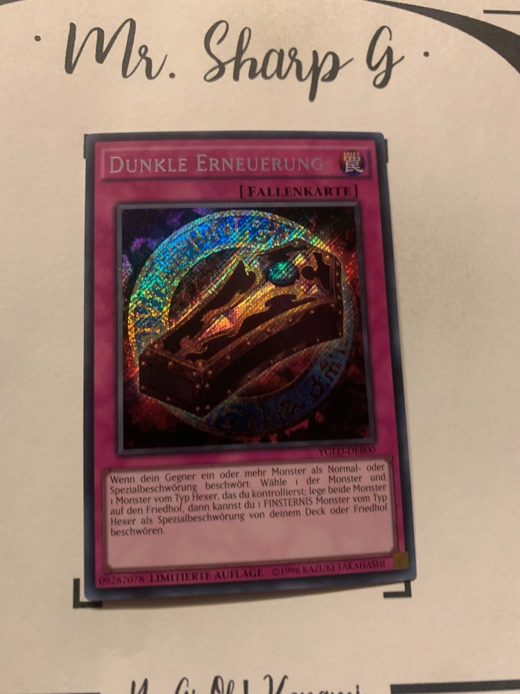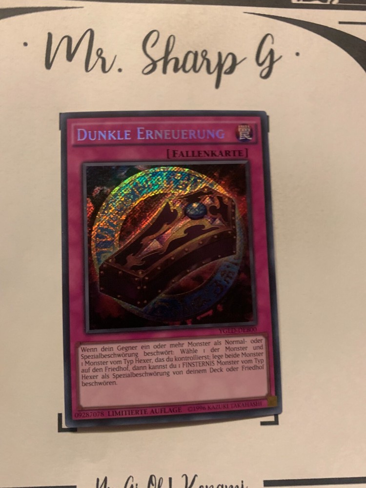- Mr. Sharp G - - Online Store - TRADING CARDS-TCG-COLLECTION-SETS-TOURNAMENT-Yu Gi Oh! Konami * * * DUNKLE ERNEUERUNG - 1. AUFLAGE YGLD-DEB00 - Bitte schauen Sie sich die beigefügten Bilder an, um einen vollständigen Überblick über den Zustand jedes Artikels zu erhalten. - Zustand des Artikels: Neu* - in einem neuwertigem Zustand. (* Neuer Zustand - kann aber leichte Mängel wie 'whitening', leichte Eindrücke, Dellen u.a. haben - die von der Herstellung der Karte aus Produktion stammen, bitte den Bildern und in der Beschreibung den Zustand entgegennehmen) - Typ/ Serie: FALLENKARTE / LIMITIERTE AUFLAGE YGLD-DEB00 - Seltenheitsstufe/ Rarity: SECRET RARE - Edition : YUGI'S LEGENDARY DECKS / 2015 / DEUTSCH / KONAMI * * * + Kartenschutzhülle & Toploader inklusiver im Preis + mehrfache Bestellung = einmalige Versandkosten + versicherter Versand Bestellung in Höhe - v. 8,50EUR in Deutschland/ Inland - v. 12,50EUR im Ausland/ International + Großbestellungen kostenloser Versand Inland und International - Bei Fragen, Details, nicht im Bestand gewünschte Karten/ Artikel oder Versandgutschriften schreiben Sie uns! Wir freuen uns auf Ihre Nachricht! - Vielen Dank für Ihr Vertrauen, Unterstützung und Besuch in unserem Store ! - Ihr Mr. Sharp G Team