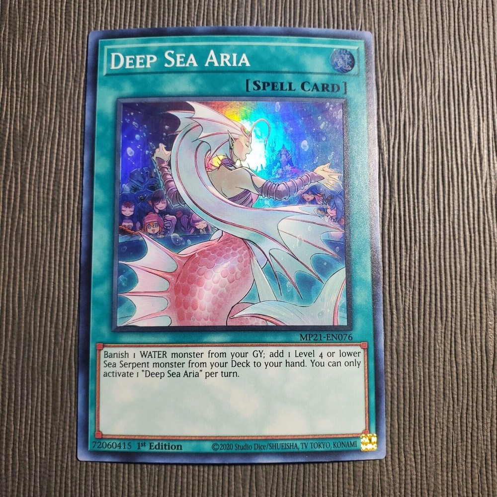 You are bidding on : 1 x Yu-Gi-Oh 2021 Mega-Tin: Ancient Battles DEEP SEA ARIA (Super Rare - 1st Edition) MP21-EN076 All cards are in Near Mint condition unless specified Pictures are stock pictures ONLY it is not of the actual card How we identify the condition of the card: Near Mint: Most of the time cards in this condition are pack fresh but, the card may have minor flaws that are not visible with a quick inspection, small white dots or scratches that you have to closely examine the card to see. Excellent: Overall the card looks near mint but may have minor scratches, slightly worn edges that are visible but they do not interfere with the way the card looks. Lightly Played: Similar to a card in excellent condition except there is more whitening around the edges and the corners are a little more worn or slight bends or creases that are visible. There might be some slight whitening on the back or front of the card. Imperfections will be visible with a quick inspection. When the card is sleeved the imperfections will not be noticeable and the card will look just like the rest of your cards Played: There is a large amount of whitening around the edges and the corners have a good amount of damage, many scratches, bends and/or creases on the card. When the card is sleeved it can still be played Shipping and Handling : Canada Shipping is $1.50 CAD Tracking is offered for $13 CAD BUT tracking is required on any purchases that are over $50 CAD Please contact us for combined shipping if interested in purchasing multiple cards before paying USA Shipping is $1.99 CAD Regular Mail for all orders under $19.99 Shipping is $7.99 CAD with tracking for all orders $19.99 and over Please contact us for combined shipping if interested in purchasing multiple cards before paying INTERNATIONAL Shipping is $4.99 CAD with regular mail Tracking is offered for $29.99 CAD BUT tracking is required for purchases over $50 CAD Please contact us for combined shipping if interested in purchasing multiple cards before you pay Combined shipping: We offer combined shipping: each and every additional item after the first one is only $0.25 (25 cents). To obtain combined shipping fees, please use the shopping cart or ask for the combined shipping invoice BEFORE you pay. If you pay item-by-item, right away after the purchase, we will not be able to offer you combined shipping anymore. Handling Your order will be shipped 1-3 business days after payment has been received *“Business days” are normal weekdays. Saturdays, Sundays, and major holidays do not count as business days. Cards purchased are packaged and shipped in a sleeve, toploaders, a team bag and an envelope to ensure protection of cards Payment : Payments should be made within 5 days after purchase Epic Cards and Games Any questions feel free to email us and allow 1 day for a response. Thanks for looking! Sales Tax (Canada Only) : Purchases made by Canadian residents are subject to applicable GST/HST, depending on your province/territory. (If you do not agree to this, please do not bid. We have a registered business in Canada and are required by law to charge taxes to anything shipped within the country.) Thank you for shopping with Epic Cards and Games
