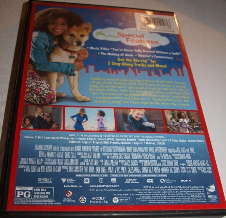 Annie DVD in Like New Condition Excellent Quality $ 2.91 DVD Annie LIKE NEW***********.... Flower Bowl quantity Add To Cart Description Specifics Reviews (3) Description DVD Annie LIKE NEW***********. Specifics Format DVD Movie/TV Title Annie Type Movie Reviews Rated 4 out of 5 windwalk429b Fast shipping. Exactly as described. Awesome seller and will buy again. Thank you so much�� Rated 5 out of 5 Tony Song061 Fast shipping, perfect condition, great seller. THANK YOU!! A+++++++++++++++++++++++ Rated 5 out of 5 Gino31612dc5 As described and delivered quickly. Highly recommend.