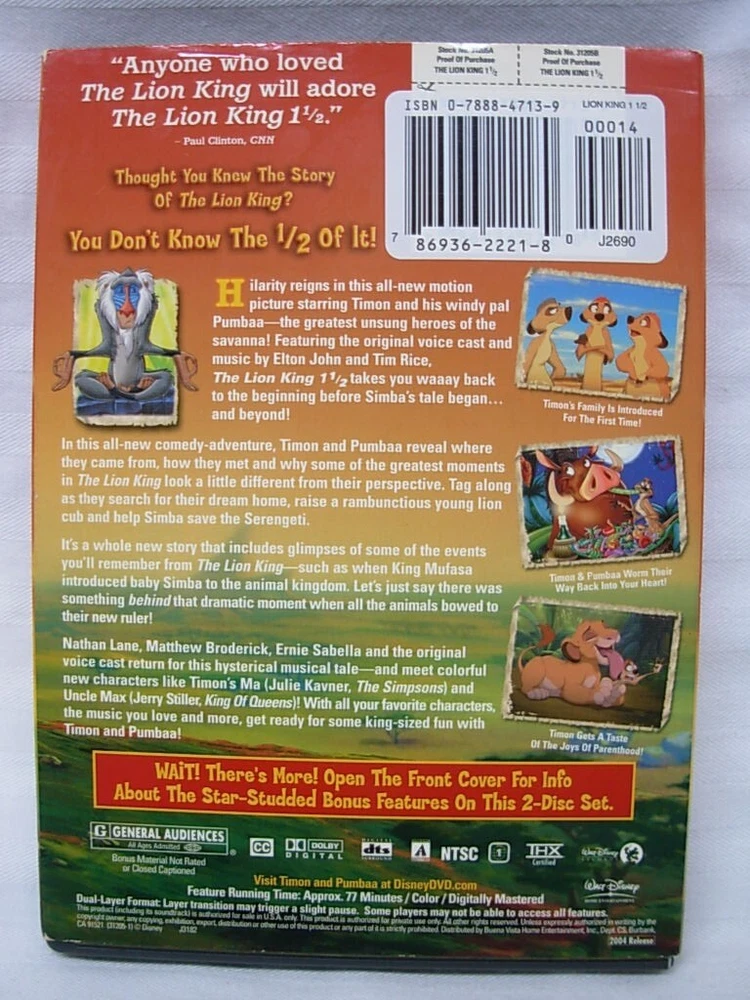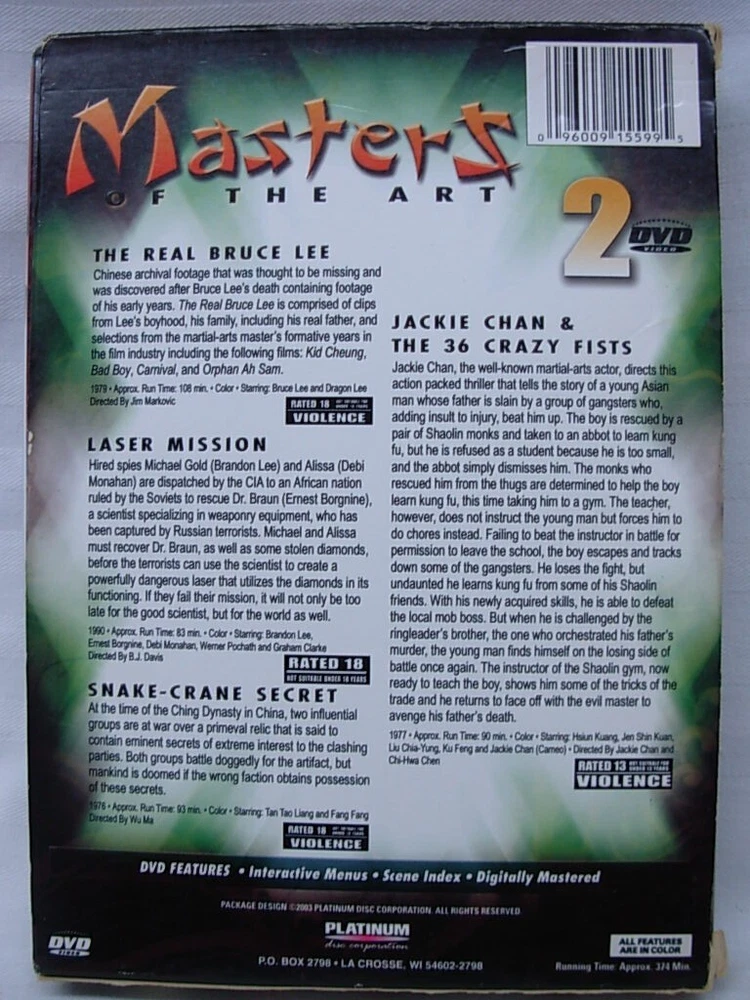 Choose your DVDs from the list too add to or start your collection. DVD's and jewel cases range from GOOD to LIKE NEW condition. Some discs may have light scratches which do not effect the play. Some discs may be formal rentals. Will combine multiple purchases for shipping. Shipping weight is 4 ounces. Ships in an envelope via USPS Media Mail. Need it faster? Choose USPS Priority Mail at checkout. Shipping to the US only. NO International shipping.