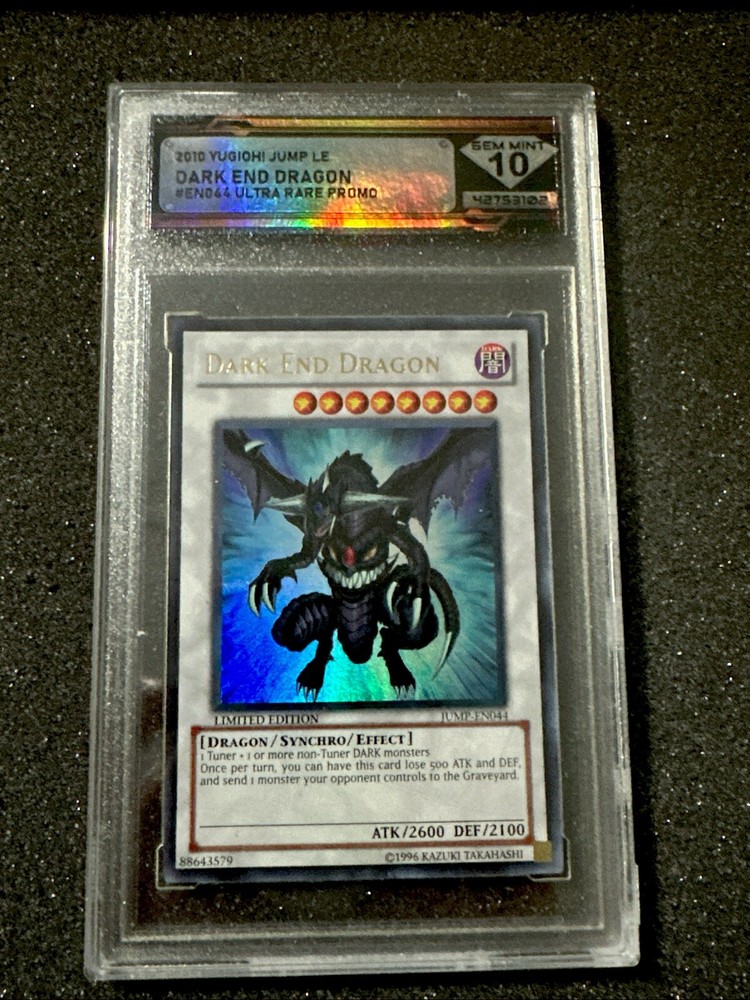 Elevate your Yu-Gi-Oh! TCG collection with the formidable Dark End Dragon, a treasure from the Shonen Jump Magazine Promos. Card number JUMP-EN044, this synchro-effect monster is a must-have for duelists seeking to bolster their deck with powerful offensive and defensive capabilities. With an attack power of 2600 and a defense toughness of 2100, it's a force to be reckoned with. This Ultra Rare card, limited edition and highly sought after, features the iconic Dark attribute and is presented in English. Manufactured by Konami, the Dark End Dragon stands out with its unique card art synonymous with the legendary series. Whether you're a seasoned collector or a strategic player, this card is an asset that can tip the scales in your favor. You can see the DSG report for this card here https://dsggrading.com/gradereport/?cardid=42753102
