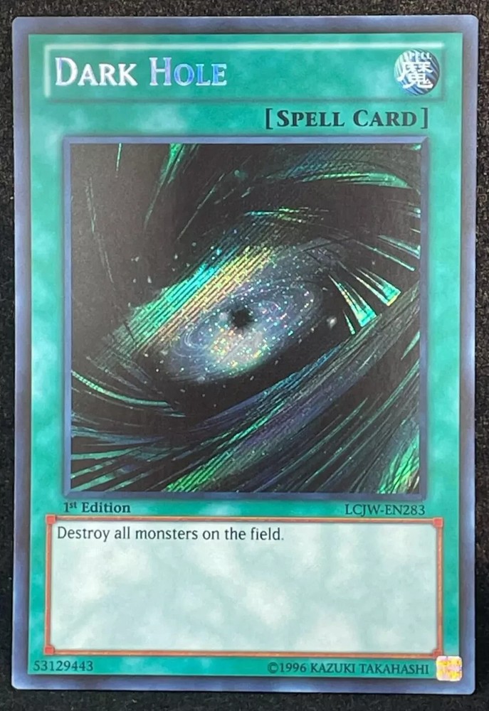 Unleash strategic depth in your Yu-Gi-Oh! TCG arsenal with the Dark Hole card from the Yu-Gi-Oh! Legendary Collection 4: Joey's World-1st Edition. As a Secret Rare card numbered LCJW-EN283, it stands as a must-have for both serious collectors and competitive players seeking to enhance their game with a powerful Spell-Normal card. Crafted by Konami and presented in English, Dark Hole offers a compelling addition to any deck with its unique Spell attribute. Embrace the allure of the first edition and elevate your gameplay with this iconic card, a jewel in the crown of the Yu-Gi-Oh! trading card game.
