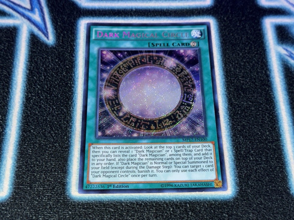 The Dark Magical Circle card is a Secret Rare collectible card from the 2017 Mega-Tins Mega Pack set in the Yu-Gi-Oh! TCG. Manufactured by Konami, this English-language card features a Japanese-sized design and is made of durable card stock. With its unique attributes as a Spell-Continuous card, this 1st Edition card is perfect for players aged 6 and above looking to enhance their gameplay experience with its powerful abilities.