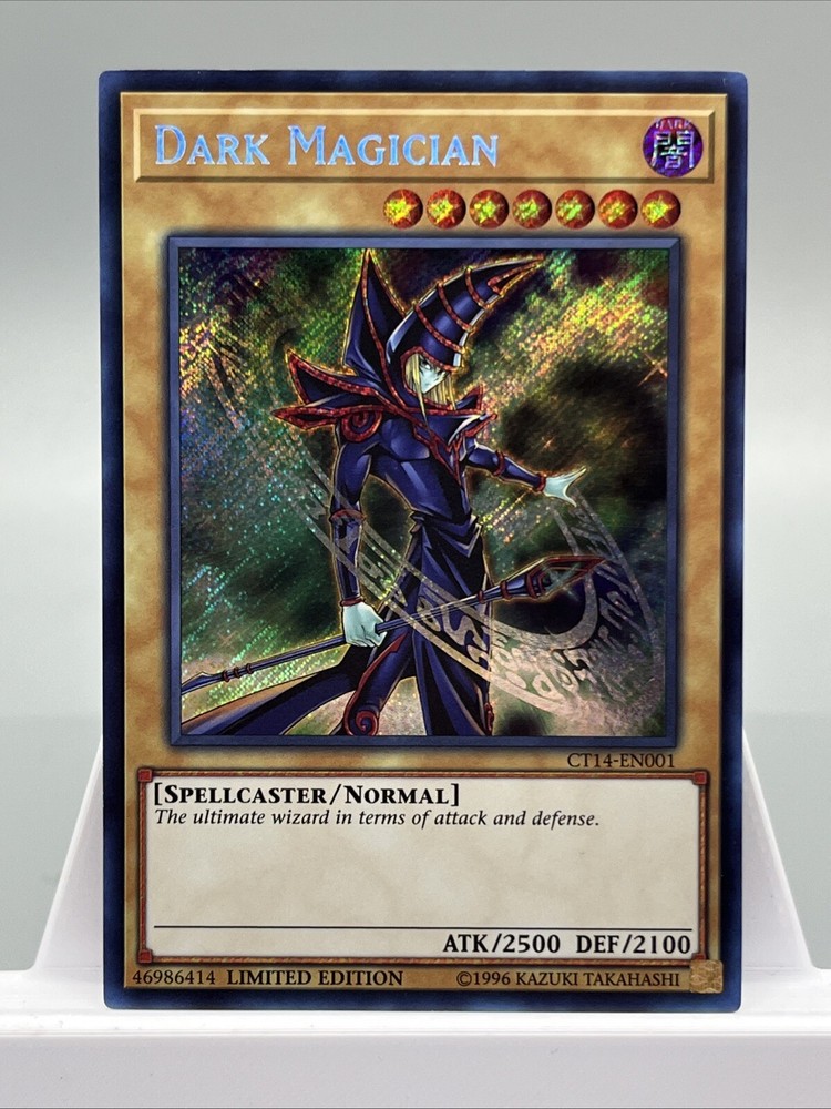 This limited edition Dark Magician card is a must-have for any Yu-Gi-Oh! TCG collector. With a secret rare rarity and normal card type, it features the iconic spellcaster creature type and a defense/toughness of 2100. The card is part of the 2017 Mega-Tins set and has an attack/power of 2500. The card is manufactured by Konami and is in English language. It comes with a card number of CT14-EN001 and is a perfect addition to any collection. Don't miss out on the chance to own this rare and sought-after card.