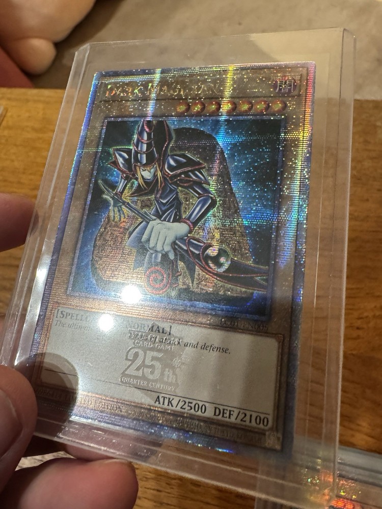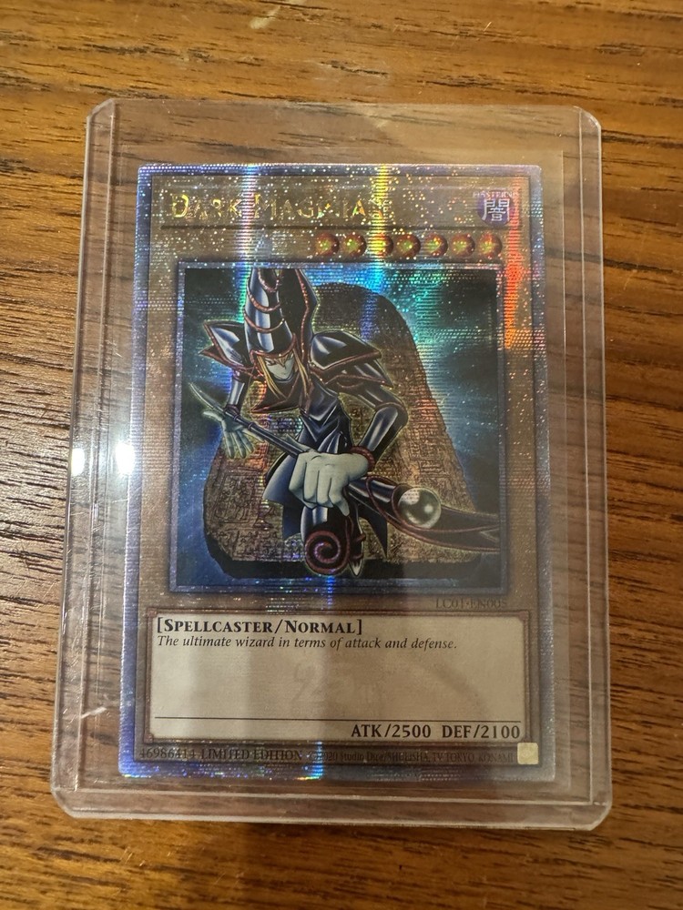 Unleash the power of darkness with the Dark Magician card from the Legendary Collection 1, LC01-EN005. A must-have for any Yu-Gi-Oh! TCG enthusiast, this card features the iconic spellcaster in stunning detail, ready to cast his arcane spells. The Secret Rare rarity ensures this card stands out in your collection, boasting the exceptional quality and design Konami is known for. Whether for competitive play or as a centerpiece in your collection, the Dark Magician card reflects your allegiance to the Yu-Gi-Oh! character family. Immerse yourself in the strategic gameplay of the Yu-Gi-Oh! TCG and enhance your game with this formidable card.