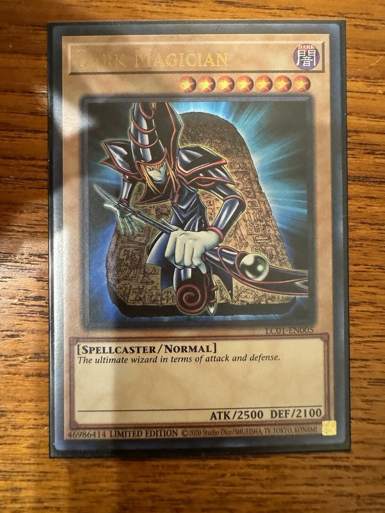 Dark Magician LC01-EN005 from the Yu-Gi-Oh Legendary Collection 1 is a highly sought-after Limited Edition card in pristine near mint condition. This English-language card features the iconic Spellcaster creature type and Dark attribute, making it a must-have for collectors and players alike. The holographic finish adds a touch of rarity and elegance to this Normal card, perfect for any Yu-Gi-Oh TCG enthusiast's collection.