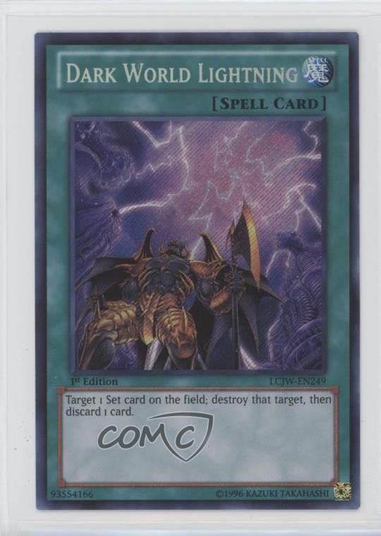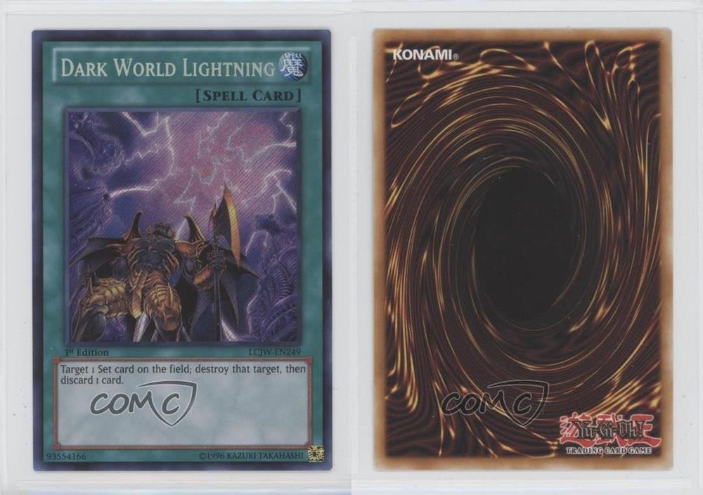 2013 Yu-Gi-Oh! Legendary Collection 4: Joey's World - Mega-Pack [Base] - 1st Edition #LCJW-EN249 Dark World Lightning COMC Item: 37494439 - YuGiOh Card - Featuring Dark World Lightning Search for more: 2013 Yu-Gi-Oh! Legendary Collection 4: Joey's World Search for more: 2013 Yu-Gi-Oh! Legendary Collection 4: Joey's World - Mega-Pack [Base] - 1st Edition View all of our Listings Auctions Buy It Now About Us Located in the beautiful Pacific Northwest, COMC (Check Out My Cards) is the world's largest consignment service for trading card singles. More than 10,000 people have used our consignment service to list over 50 million trading cards. Find out how we can help you consign your items on eBay by contacting us through eBay messaging. COMC -- "The Safe & Easy Way to Buy & Sell" Raw Condition for Modern Cards Unless otherwise noted, raw modern cards are listed in Near Mint-Mint condition or better. A NM-MT card appears to be Mint at first glance, but upon closer inspection, may exhibit some of the following: minor print defects (e.g. roller marks, print line, dimple), minor scratches, slight edge wear, and slight corner wear. Centering is clearly visible in the images provided and does not factor into our condition assessment. Raw Condition for Vintage Cards Unless otherwise noted, raw vintage cards are listed in Excellent condition or better. An EX card may exhibit some of the following: minor rounding of corners, surface wear, print defects, light scratches, and slight edge wear/chipping. Centering is clearly visible in the images provided and does not factor into our condition assessment. Domestic Shipping Combined shipping for multiple items is available. To receive combined shipping, please ensure all desired items are in your eBay shopping cart before proceeding to checkout. eBay limits orders to 40 items per order. We automatically combine multiple orders placed on the same day. If you place multiple orders on the same day, please contact us to request a refund of applicable shipping costs. Signature confirmation may be required on invoices over $400. All cards are protected and shipped securely. International Shipping COMC offers eBay's International Shipping (EIS) for international orders under $2,500* (see country exceptions below). All duties and import fees are paid at checkout; in the rare event that there are additional import fees upon delivery, these are borne by the buyer. EIS packages route through a shipping hub in Erlanger, KY before shipping to their final destination. Please note that EIS does not allow for combined shipments. The shipping rates are determined by eBay and cannot be adjusted. *Maximum sale price exceptions: Colombia, Kuwait ($2,000); Taiwan ($1,539); Chile, Costa Rica, Guatemala, Honduras, Trinidad and Tobago ($1,000); Antigua and Barbuda, Aruba, Belize, Dominica, Grenada, Philippines, Saint Kitts and Nevis, Saint Lucia, Montserrat, Turks and Caicos Islands ($500); Dominican Republic, El Salvador ($200). Please request a shipping quote through eBay messaging for orders that exceed the maximum sale price supported by eBay's International Shipping. You will be responsible for all duties and import fees for international orders shipped outside the EIS. All cards are protected and shipped securely. Payment COMC does not accept offers on our cards through our eBay storefront. COMC utilizes eBay’s managed payments system. If you are experiencing difficulties making a payment, please contact eBay for assistance. Return Policy Returns are only accepted on the rare occasion the item is not as described. If you are making a return, please initiate the return process through eBay so a mailing label can be provided for you. Prior to listing, our expert team carefully assessed this item to represent it accurately. Please review the description and high-definition images prior to purchasing to ensure this item meets your satisfaction. We welcome you to contact us if you have further questions about this item. Trust and Integrity COMC carefully assesses each item consigned to us to prevent fraudulent items from entering the marketplace. If you believe an item offered on COMC may be fraudulent, please contact us with details so we can investigate the issue. Items we determine are outside our supported items policy may be removed. Last Modified: 5/27/2025 11:35:50 AM PDT