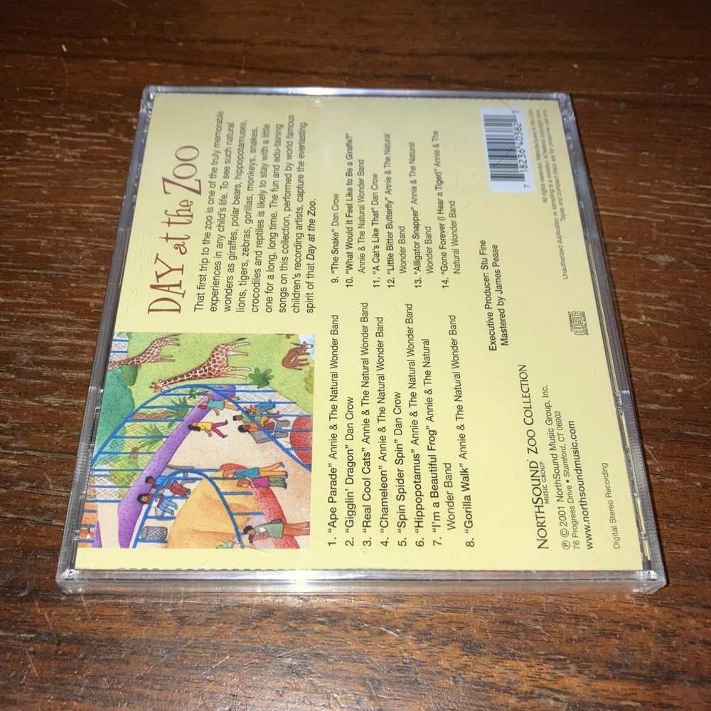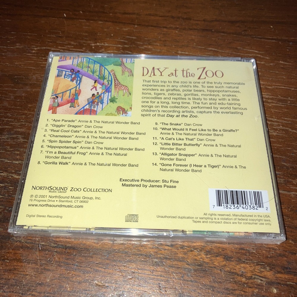 Day at the Zoo - Songs For Children is an audio CD released in 2001 by Dan Crow and Annie and the Natural Wonder Band. The CD features songs for children and includes the title track "Day at the Zoo". The product is brand new and is a great addition to any children's music collection.
