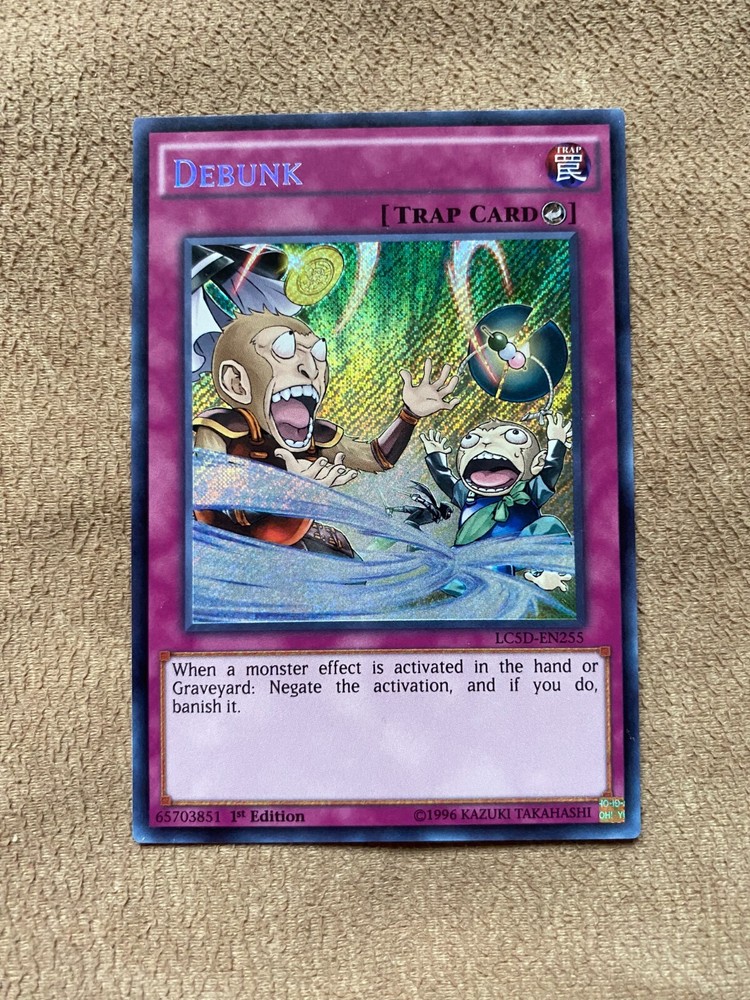 You are getting the secret rare, 1st edition, lightly played Debunk official Yu-Gi-Oh! card from the picture.