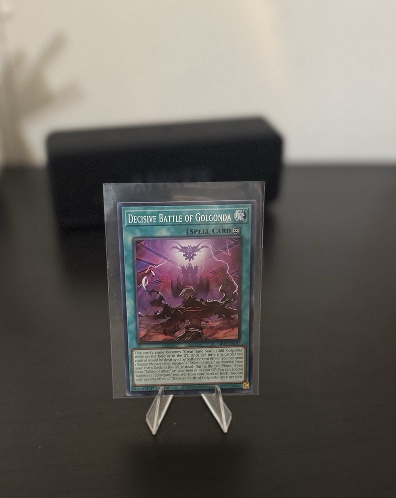 The "Decisive Battle of Golgonda" card is a 1st Edition Common/Short Print Spell-Continuous card from the Yu-Gi-Oh! TCG, specifically part of the 25th Anniversary Tin: Dueling Heroes Mega Pack set. Manufactured by Konami, this English-language card features the Creature/Monster Type of Hero and belongs to the Attribute/MTG:Color category of Spell. With card number MP23-EN197, it is a collectible card game individual card sought after by players and collectors alike. Let me know if you have any questions, will receive your items on time and in excellent condition.