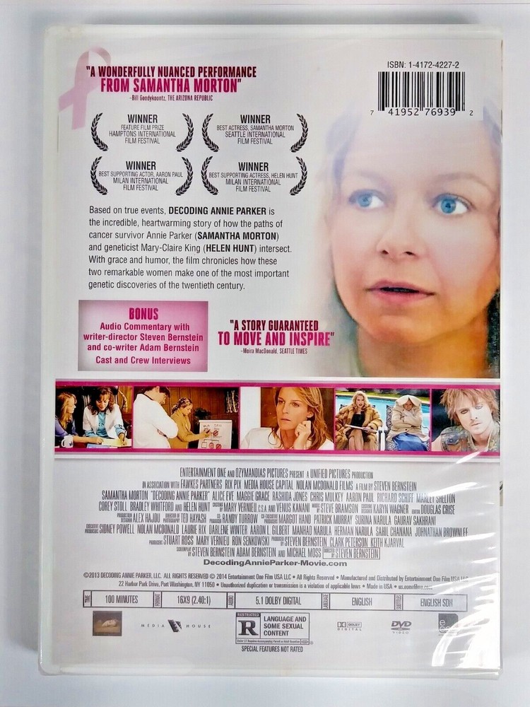 Decoding Annie Parker DVD New Sealed Docudrama Helen Hunt Samantha Morton DVD is new and sealed--small tear in the shrink wrap--see photos See photos as they are part of the description Free shipping via USPS Ground Advantage Thanks for looking! .