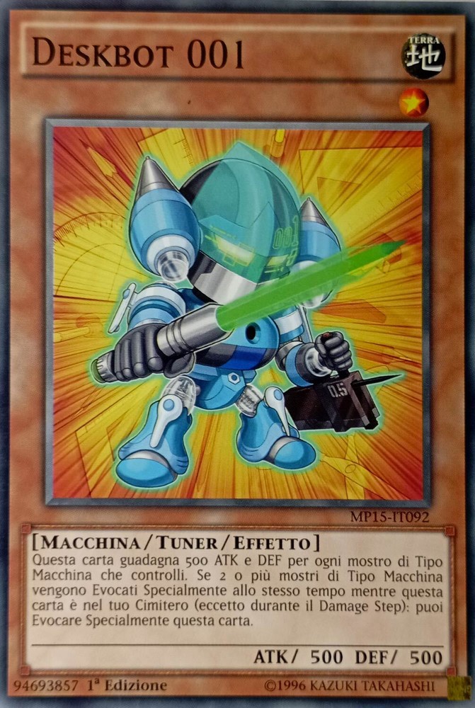 Deskbot 001 - Comune - 2015 Mega-Tins Mega-Pack - MP15-IT092 - Italiano - Nuovo Deskbot 001 - Comune - 2015 Mega-Tins Mega-Pack - MP15-IT092 - Italiano - Nuovo Guadagna 500 ATK/DEF per ogni mostro Macchina che controlli. Se 2 o più mostri Macchina vengono Evocati Specialmente allo stesso tempo, mentre questa carta è nel tuo Cimitero (eccetto durante il Damage Step): puoi Evocare Specialmente questa carta. Shipping Shipping cost: Italy Posta 1 -> 2,95 Corriere Espresso -> 5,99 Outside Italy Priority - 8,00 Delivery time: La Spedizione Viene Effettuata entro i 5 giorni successivi al pagamento dell'ordine. Payment Per qualsiasi info contattateci Service Per qualsiasi info contattateci