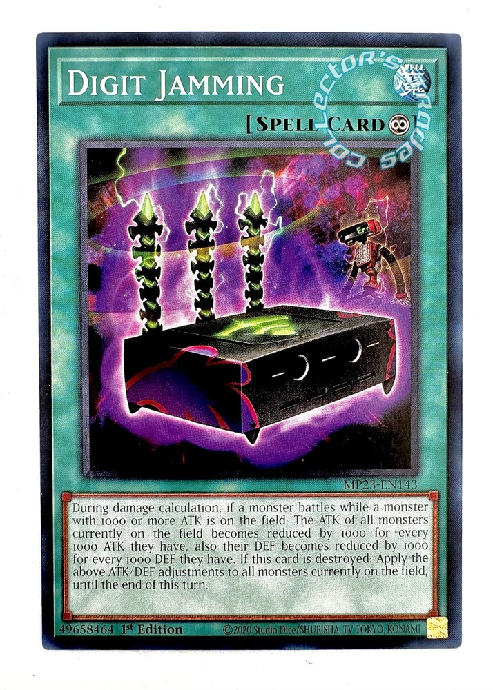 "Digit Jamming" MP23-EN143 Common Yu-Gi-Oh! 25th Anniversary Tin: Dueling Heroes Mega Pack Near Mint - "Digit Jamming " - - Spell Card (Continuous/Effect) - - No.143 - - Common - - 2023 Yu-Gi-Oh! - 25th Anniversary Tin: Dueling Heroes Mega Pack - - 1st Edition - - Continuous/Effect - - 100% Authentic Yu-Gi-Oh! - - Near Mint - - Disclaimer- No replacements can or will be shipped in case of missing/broken package. If you have any questions, comments, or concerns, please feel free to contact me. Thank you for your interest in our listings and store and please come again!