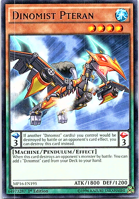 Dinomist Pteran MP16-EN195 Yugioh Light Play 1st Edition Card