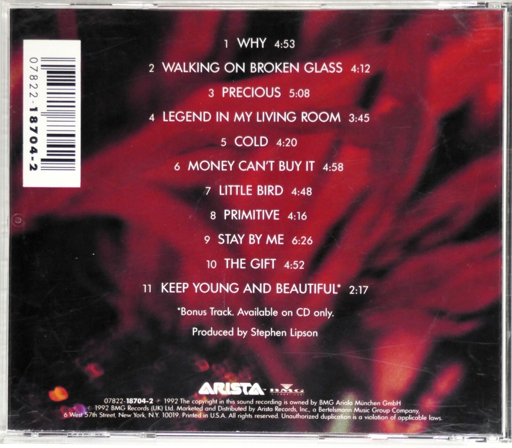 This CD features the iconic artist Annie Lennox, with her album titled Diva released in 1992 under the record label Arista. The album includes a mix of soul and synth pop with tracks that showcase Lennox's powerful vocals. The CD is in very good (VG) condition, housed in a standard jewel case, with the case and inlay also in VG condition. The catalog number for this album is 07822-18704-2 and it was produced by Stephen Lipson in the United States. Whether you're a fan of Lennox's music or just looking to add some great soul and synth pop to your collection, this album is a must-have.