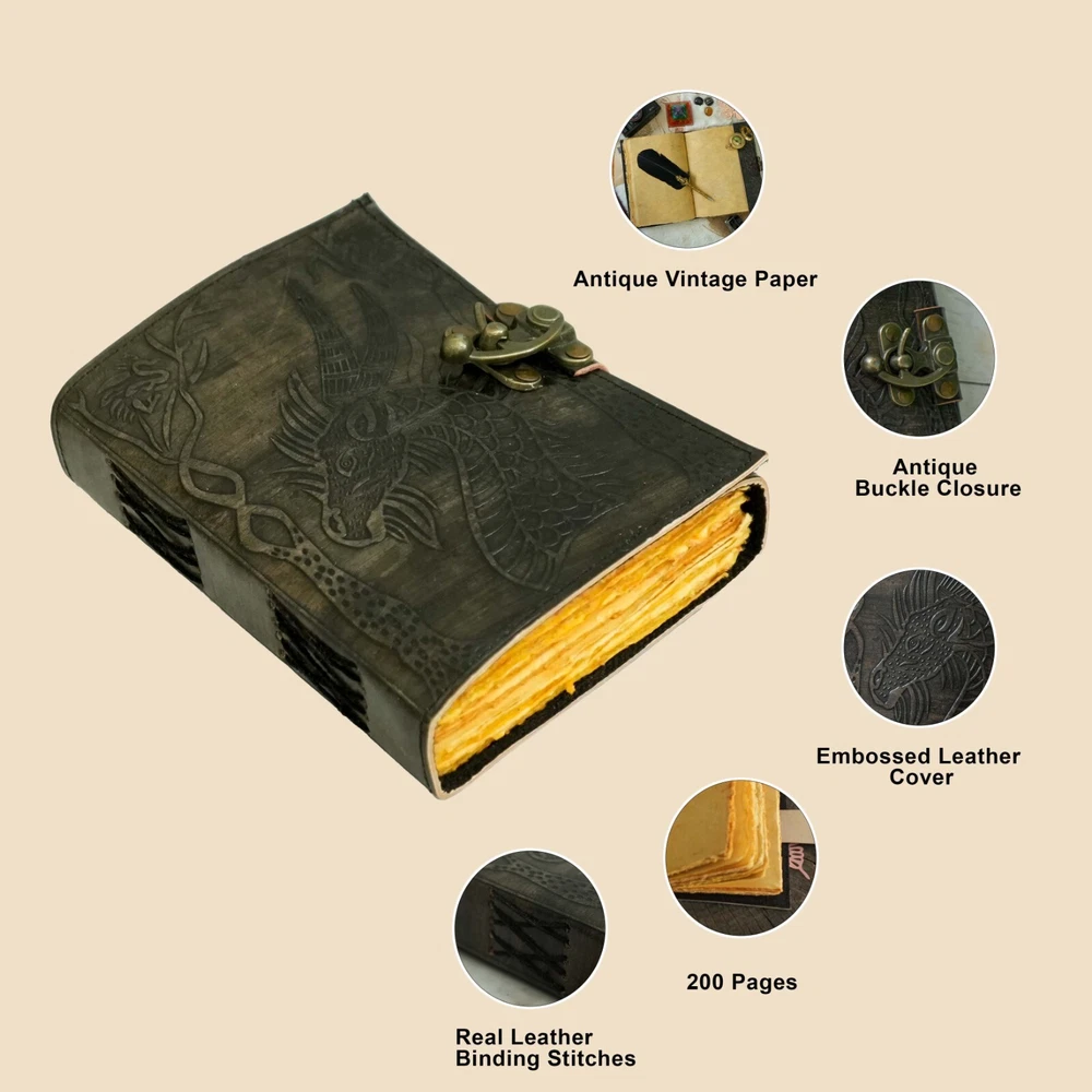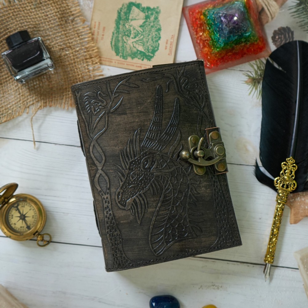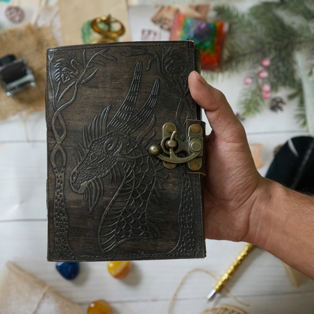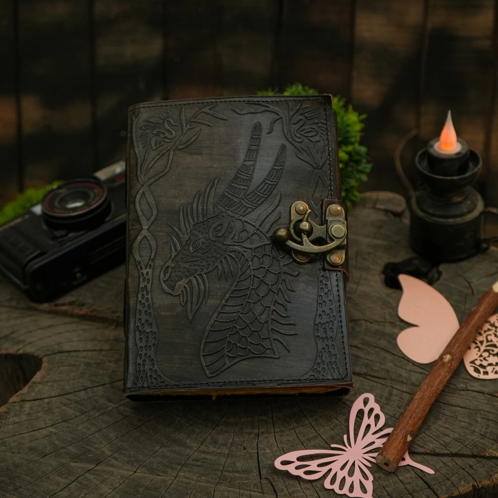 🔥🐉 Handmade Dragon Embossed Leather Journal – Vintage-Style Diary & Notebook Unleash your imagination and embrace the power of the dragon with this stunning handcrafted leather journal . Featuring an intricately embossed majestic dragon , this vintage-style diary is perfect for writers, artists, and adventurers seeking a mystical touch to their creative journey. 🛡️ Features & Craftsmanship: ✔ Premium Genuine Leather – Soft, durable, and ages beautifully over time. ✔ Handmade & Unique – Each journal is individually crafted, making it one of a kind. ✔ High-Quality Paper Options – Choose from lined, unlined, or handmade cotton paper, perfect for sketching, writing, or journaling. ✔ Compact & Travel-Friendly – Ideal for everyday journaling, note-taking, or creative storytelling. ✔ Secure Closure – Features a leather wrap, button, or metal clasp to keep your pages protected. 📖 Perfect For: ✔ Writers, poets, and journal enthusiasts ✔ Artists and creatives seeking inspiration ✔ Fantasy lovers and mythology fans ✔ RPG gamers, dungeon masters, and storytellers 🎁 A Legendary & Thoughtful Gift Searching for a unique gift for a fantasy lover? This Dragon Embossed Leather Journal makes a perfect present for birthdays, anniversaries, holidays, or special occasions . Whether used as a diary, spell book, or travel log, it will be a treasured keepsake for years to come. 📦 Fast Shipping & Personalization We offer quick shipping and custom engraving options ! Add initials, a name, or a meaningful quote to personalize your journal. Message us for details! 🔥🐉 Embrace the spirit of the dragon – Order your Handmade Dragon Leather Journal today!